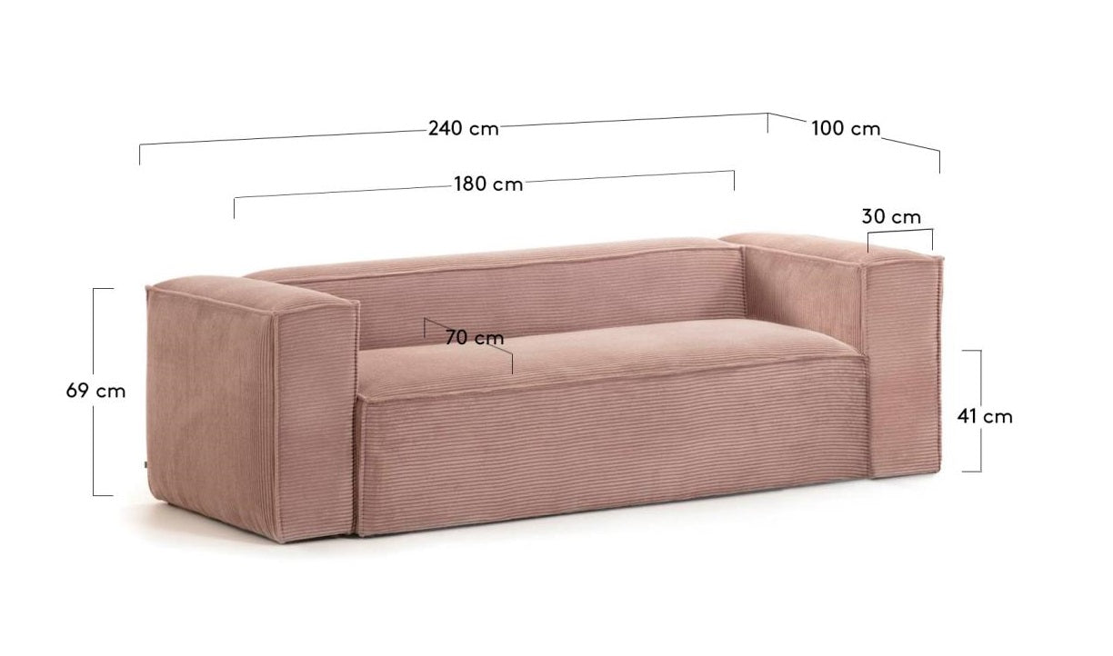3-Seater Sofa BLOK Light Pink Corduroy