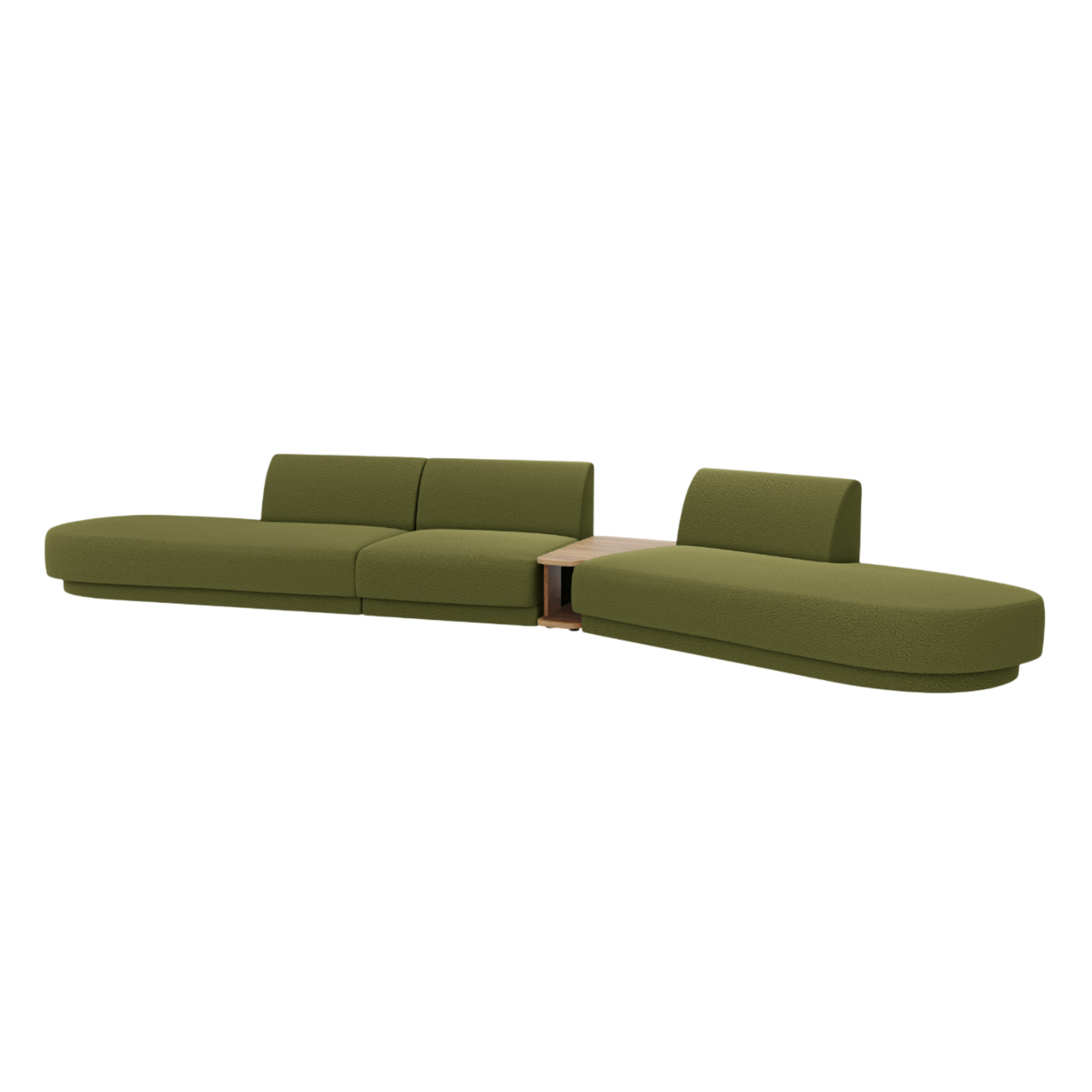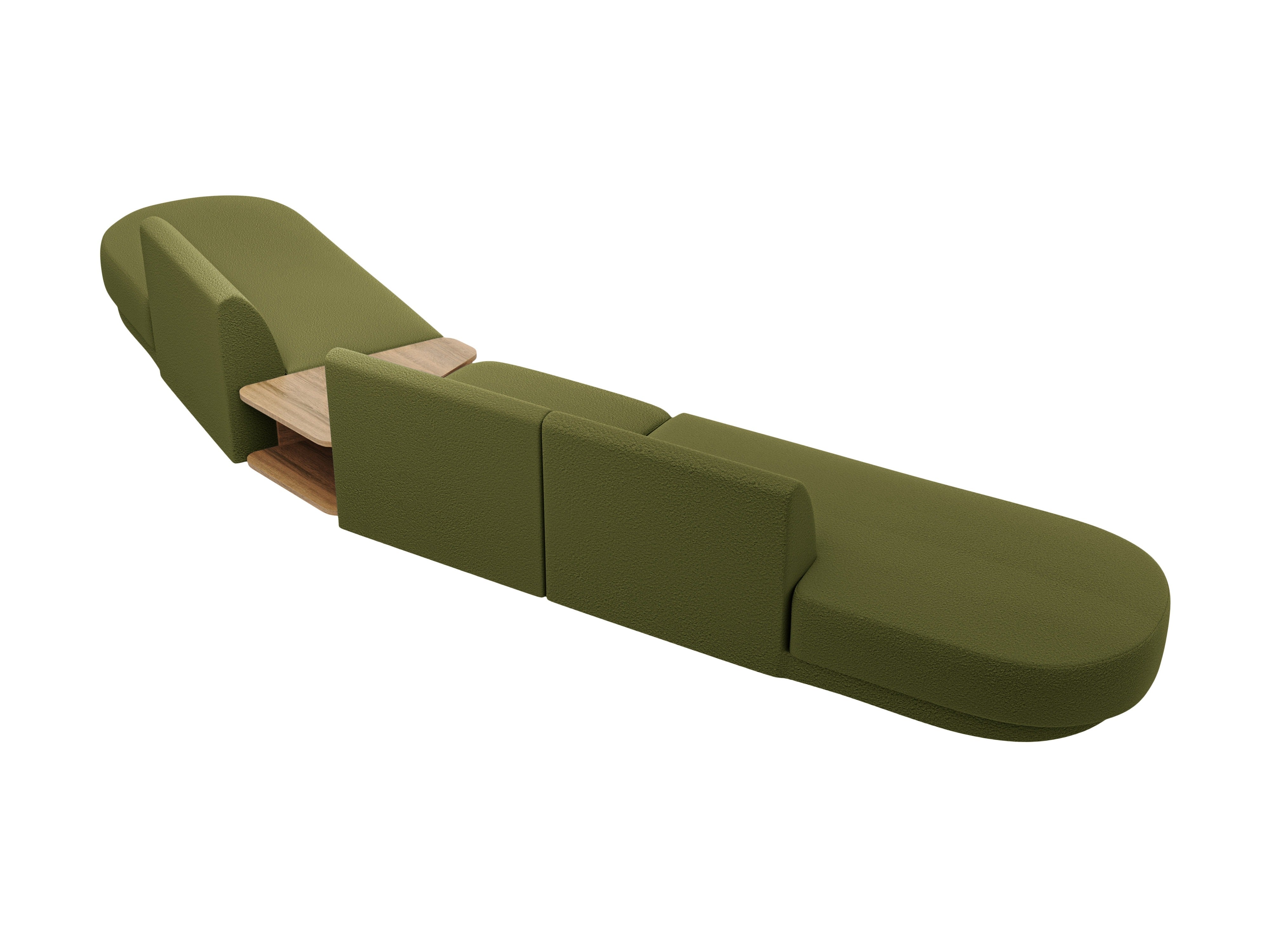 Right-facing modular sofa with table for 5 people MILEY green boucle