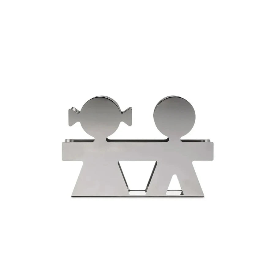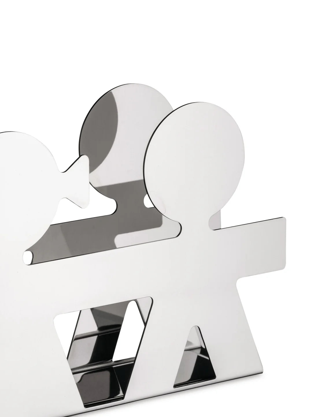 Envelope stand Girotondo, designed by the King-Kong duo, or Stefano Giovannoni and Guido Venturini, is a unique element that combines functionality with the characteristic motif of "paper men". These characters, polished to a high gloss, have become an icon of Alessi design, symbolizing a warm and joyful approach to everyday objects. The theme of "standing people" has found its place on many products, such as trays and baskets, and now also appears on a rack for envelopes, adding a little fun and style to the office and home space.