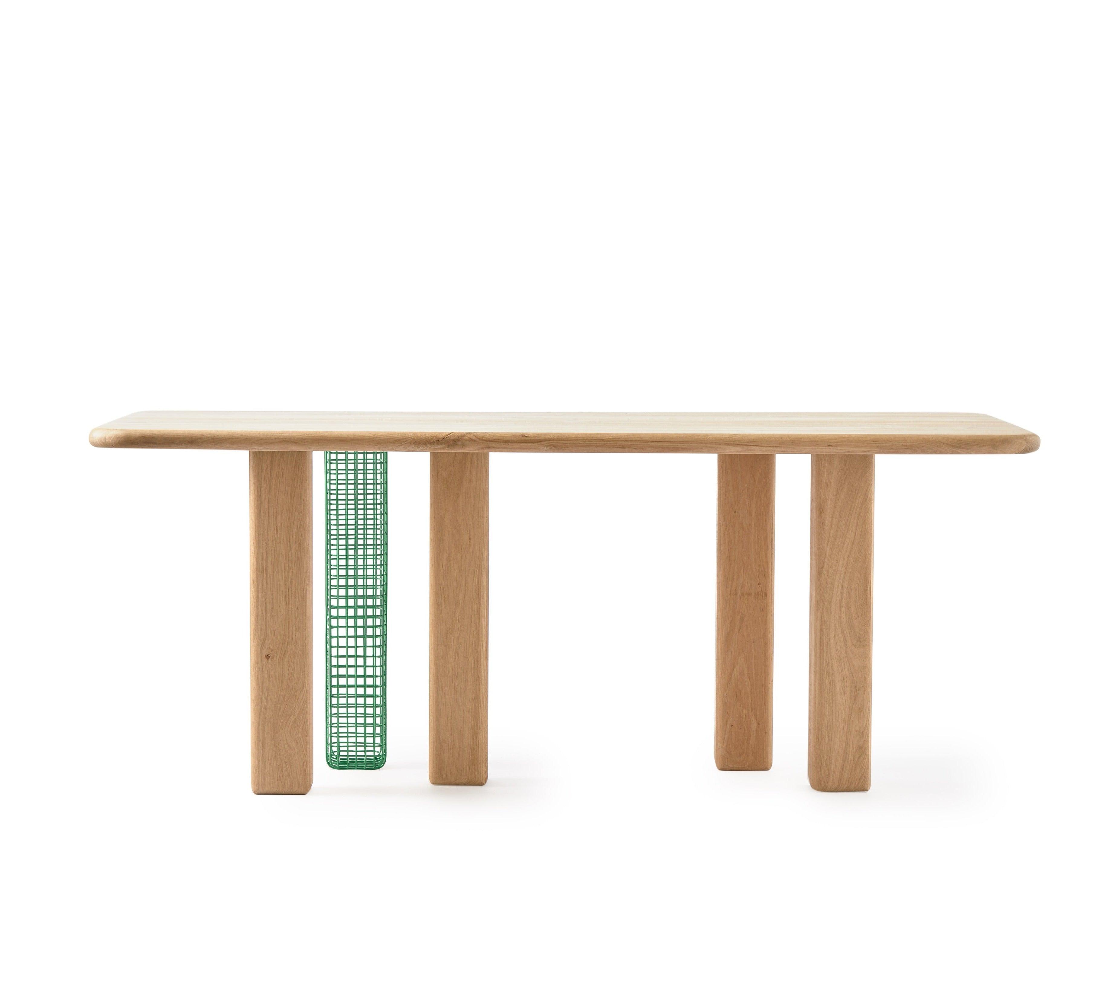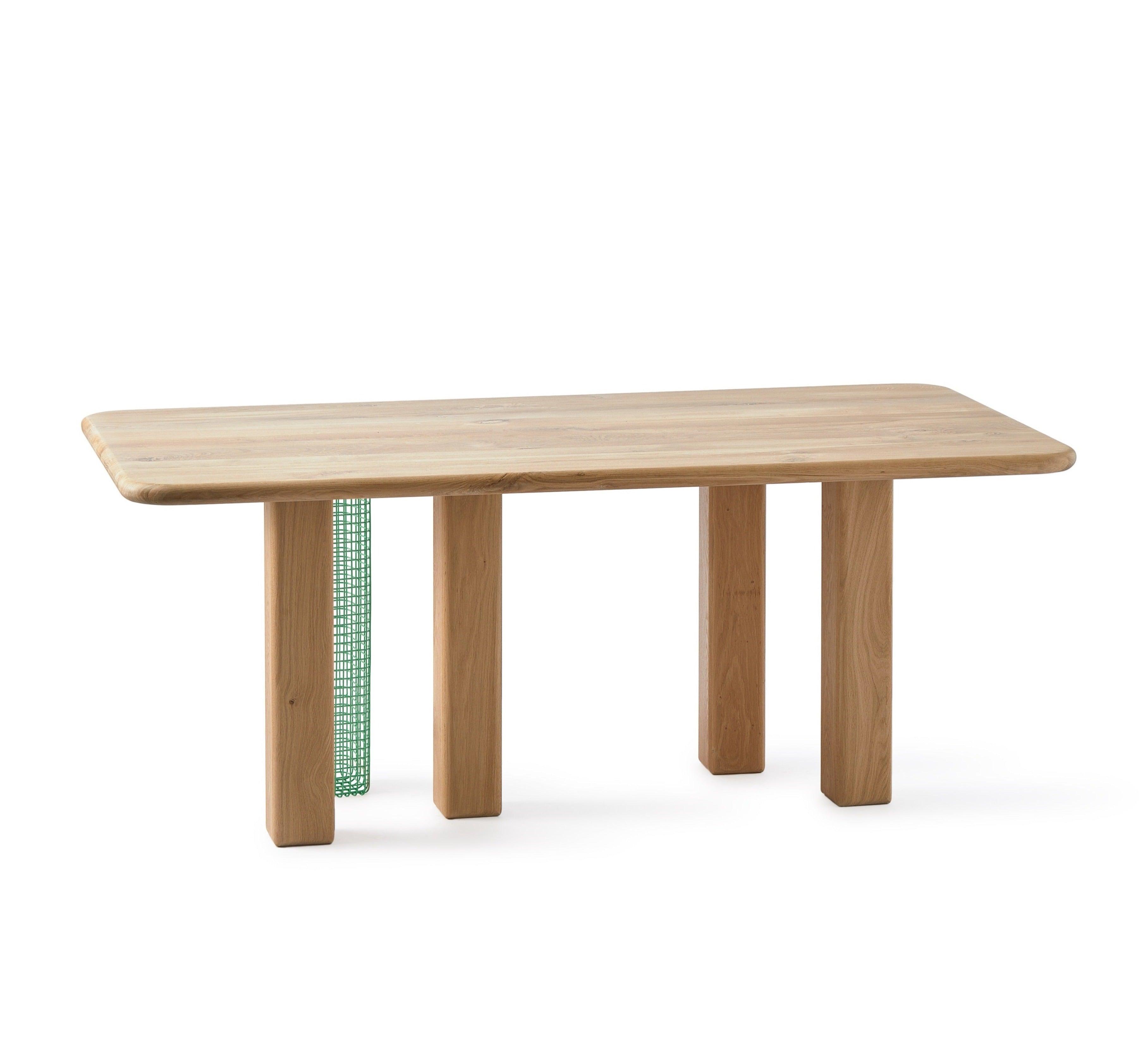 Stilts oak table with a green insertion