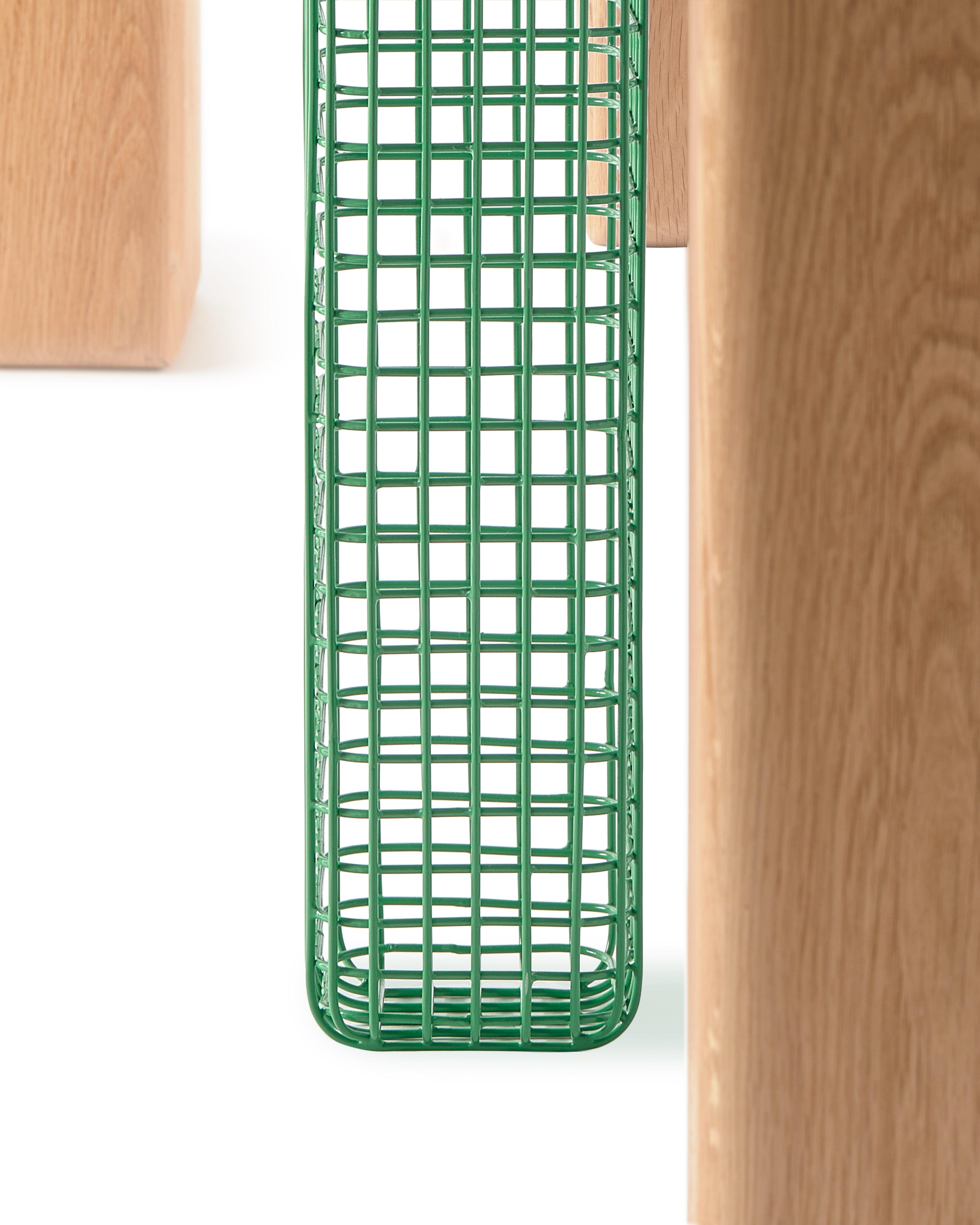 Table Stilts in the natural color of oak wood with a green insert is like an uninterrupted memory of walks in the woods, which you can now move to your interior. This table was consciously designed and made locally in the Netherlands, consisting of one, or rather the only material: certified oak wood. This approach allows for effective use of raw materials and minimizing waste in the production process, which promotes sustainable development. It is also worth emphasizing that the Stilts table reaches your home in a flat packaging, which is environmentally friendly.