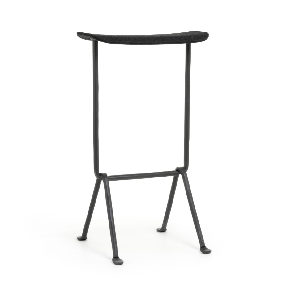 The Officina bar stool is a blend of artisanal craftsmanship and modern aesthetics. Designed by the duo Ronan & Erwan Bouroullec, it stands out with its minimalist silhouette and raw character. The metal frame made of wrought iron, available in either galvanized or powder-coated finishes, ensures durability and stability. The ergonomic seat made of polypropylene offers comfort during use, while felt pads protect the floor.