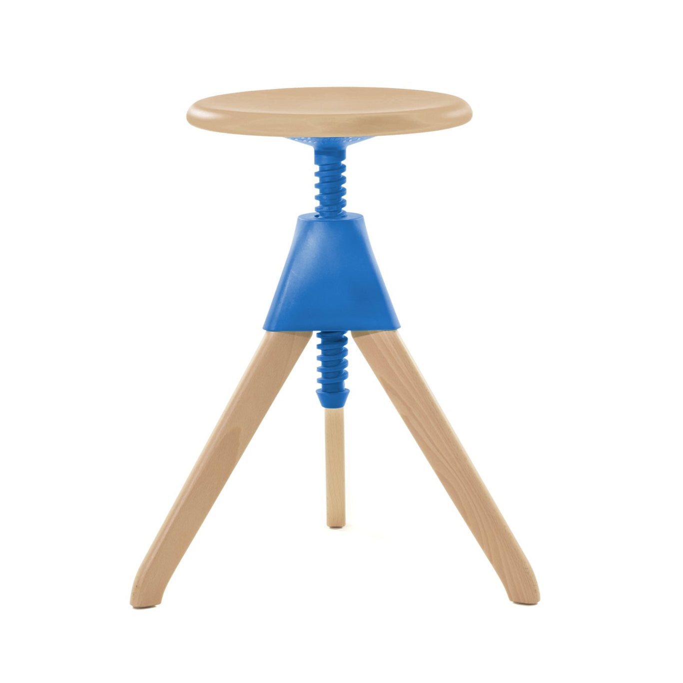 The seat and legs are made of solid beech wood – available in a natural or stained version. The construction is based on a simple height adjustment mechanism, making the stools incredibly practical for everyday use – both at the kitchen counter and in public spaces.