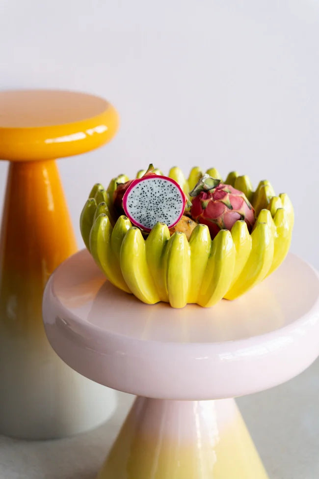 Round side table in pastel shades of pink and yellow is the perfect way to bring freshness and lightness into your space. The subtle color gradient combined with the organic shape of the tabletop and the elegant, conical base creates a harmonious and modern silhouette. The glossy surface of the enamelled steel not only adds a refined look but also ensures durability and resistance to everyday use.