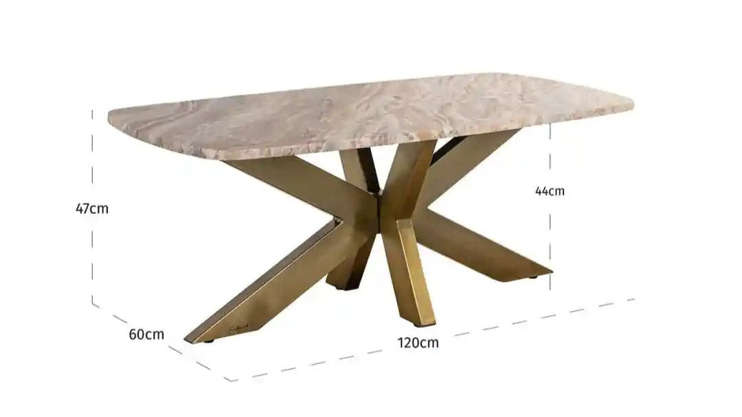 Coffee table Bottega is a refined combination of noble materials and sculptural form. The top made of Toronto marble with a subtle pattern and delicate, brown-gray tones contrasts with the dynamic base in the shape of an "X", made of brass and iron. The whole exudes elegance and modern class, making the table a perfect accent in the living room, bedroom, or hallway.