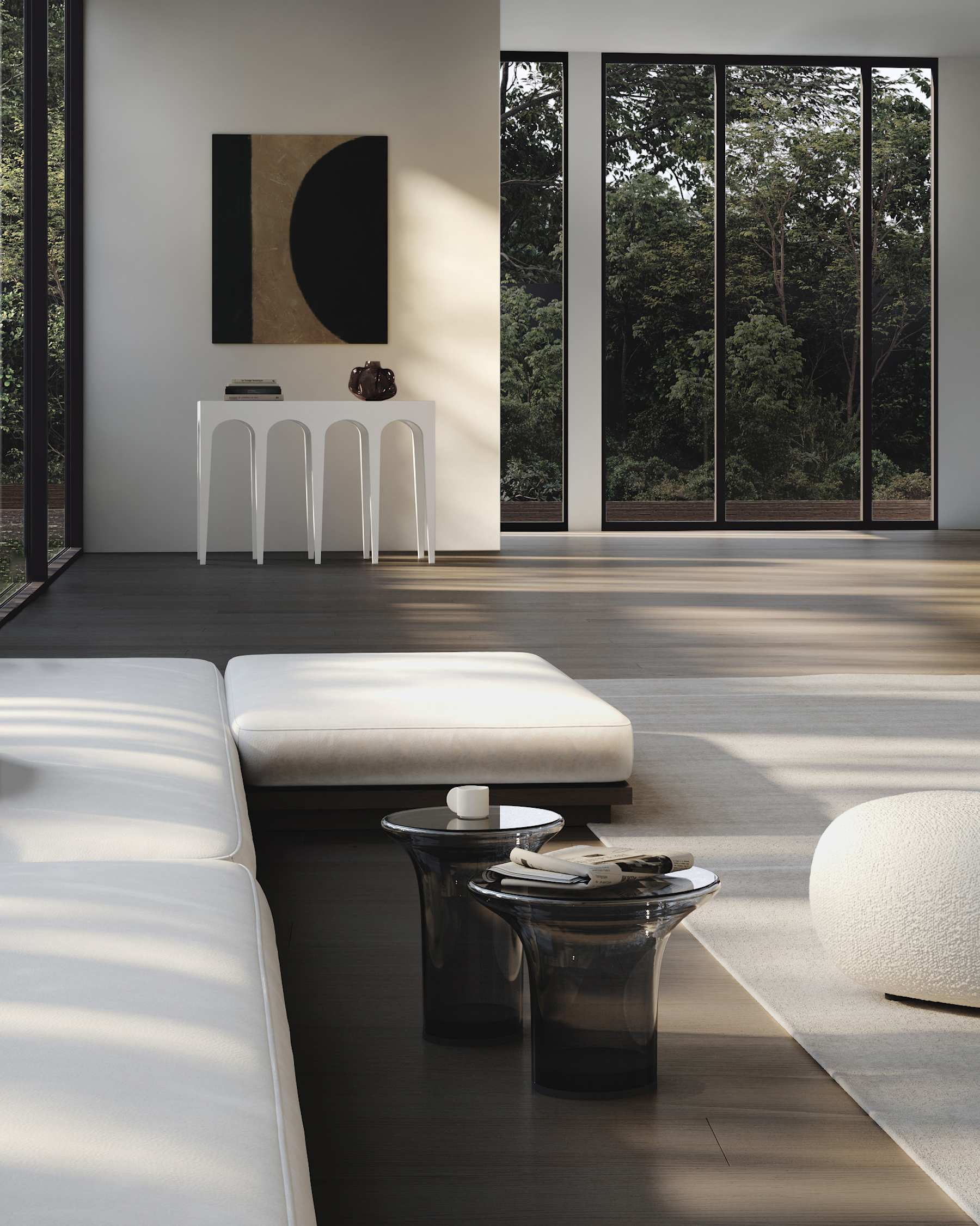 Coffee table Trumpet to contemporary interpretation aesthetics lat 70., which delights subtle form i perfect craft. Executed w whole z handmade blown glass, connects light silhouette z expressive shape reminding trumpet. His shiny surface gently reflects light, creating effect depth i elegance. Available w two refined shades – Smoked Forest i Smoked Desert – Trumpet brings do interiors unique mood: od deep, warm green inspired lasem po with a list, stoned gray desert o morning.