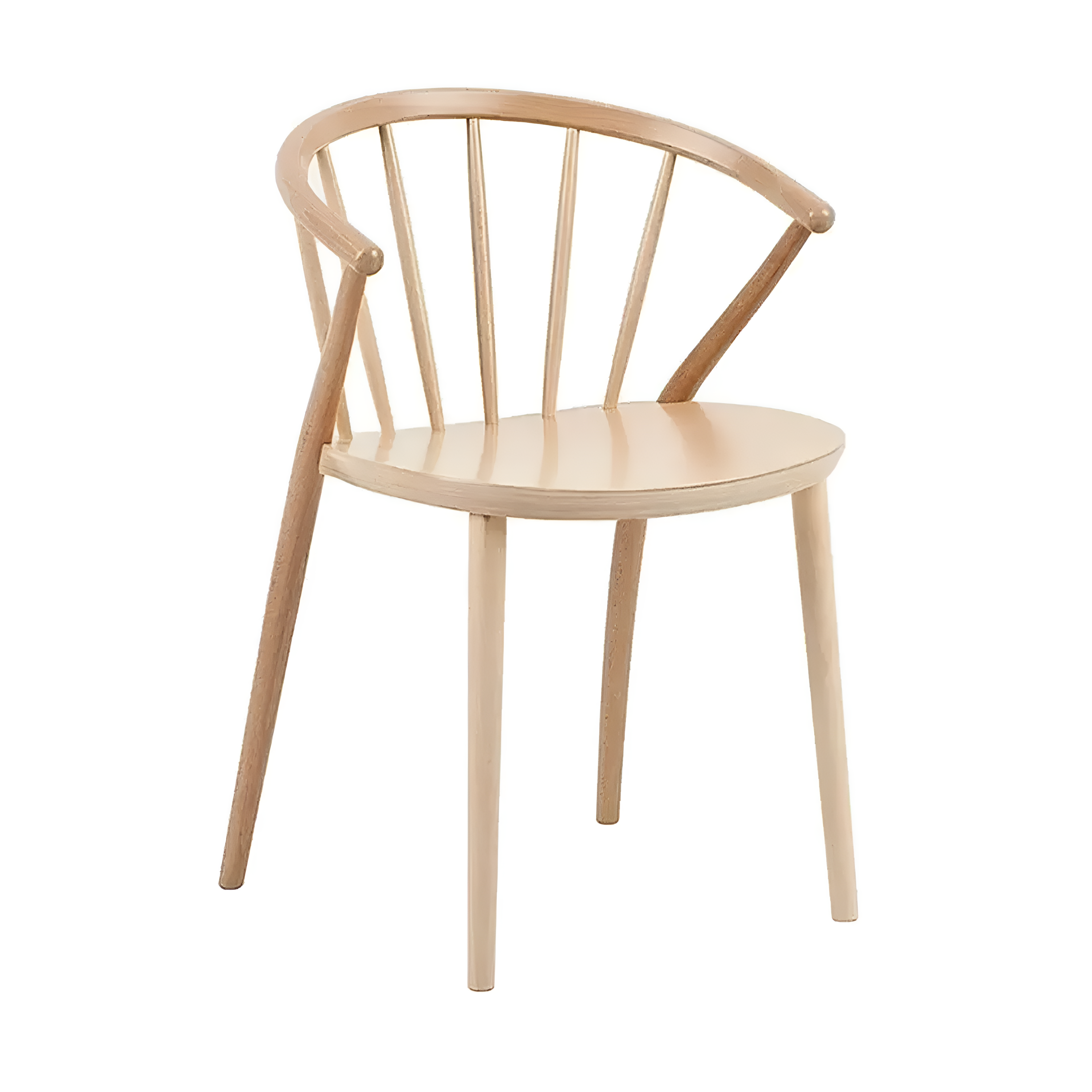 A distinctive feature of this model is the fan-shaped arrangement of the rungs in the backrest, which gives it a slightly oriental character. The back legs, rising above the seat level and smoothly transitioning into the backrest frame, are an unusual detail that highlights its unique design.