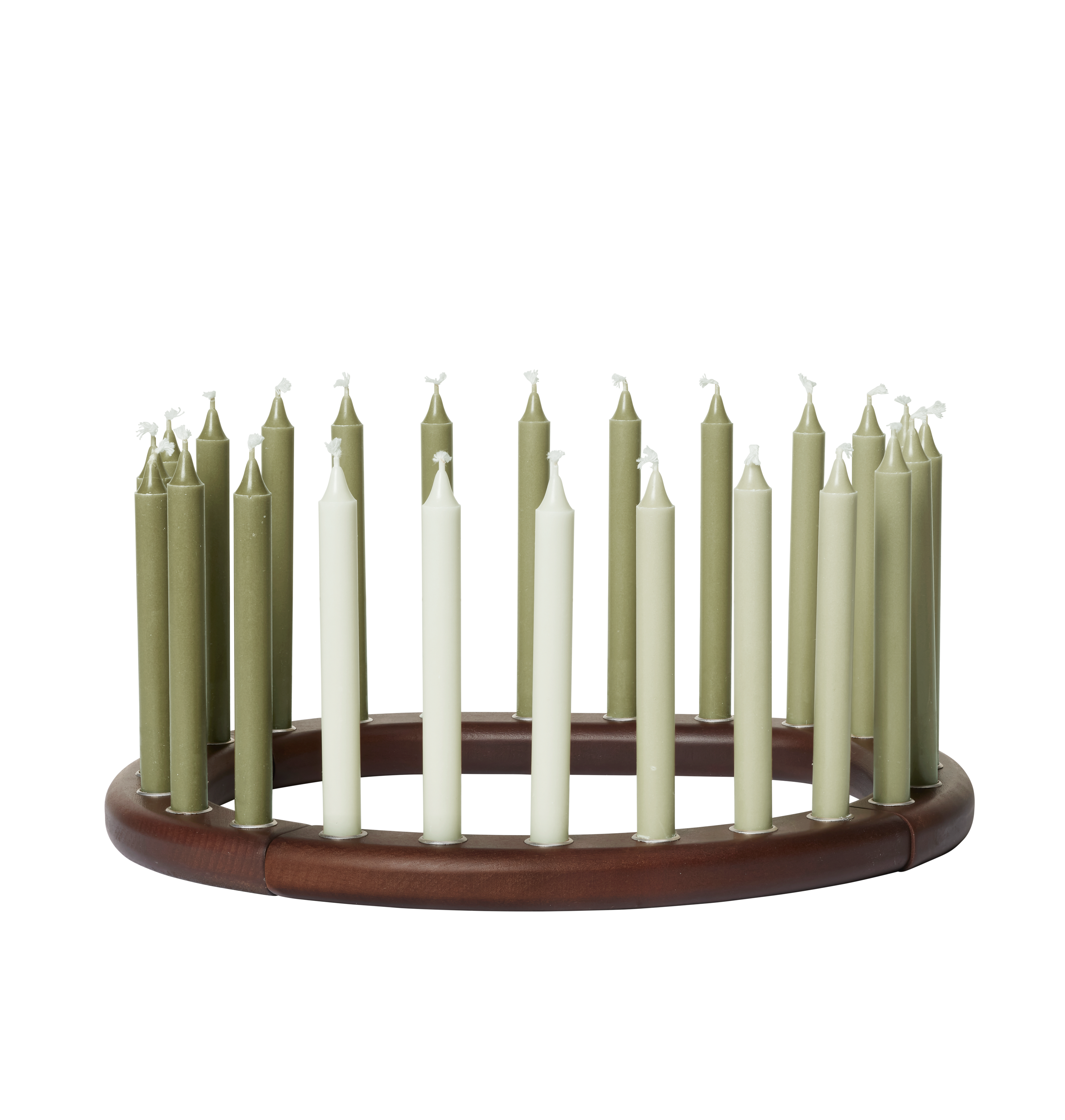 Candle holder Ori is a modern interpretation of the classic Scandinavian Advent wreath. Made from stained beech wood, it captivates with its sculptural form and warm, natural character. It consists of four unique segments with organic shapes that can be freely combined, creating a contemporary composition with exceptional aesthetics. The candle holder is designed to hold 24 small candles – one for each day of December leading up to Christmas Eve – blending modernity with the beautiful Advent tradition.