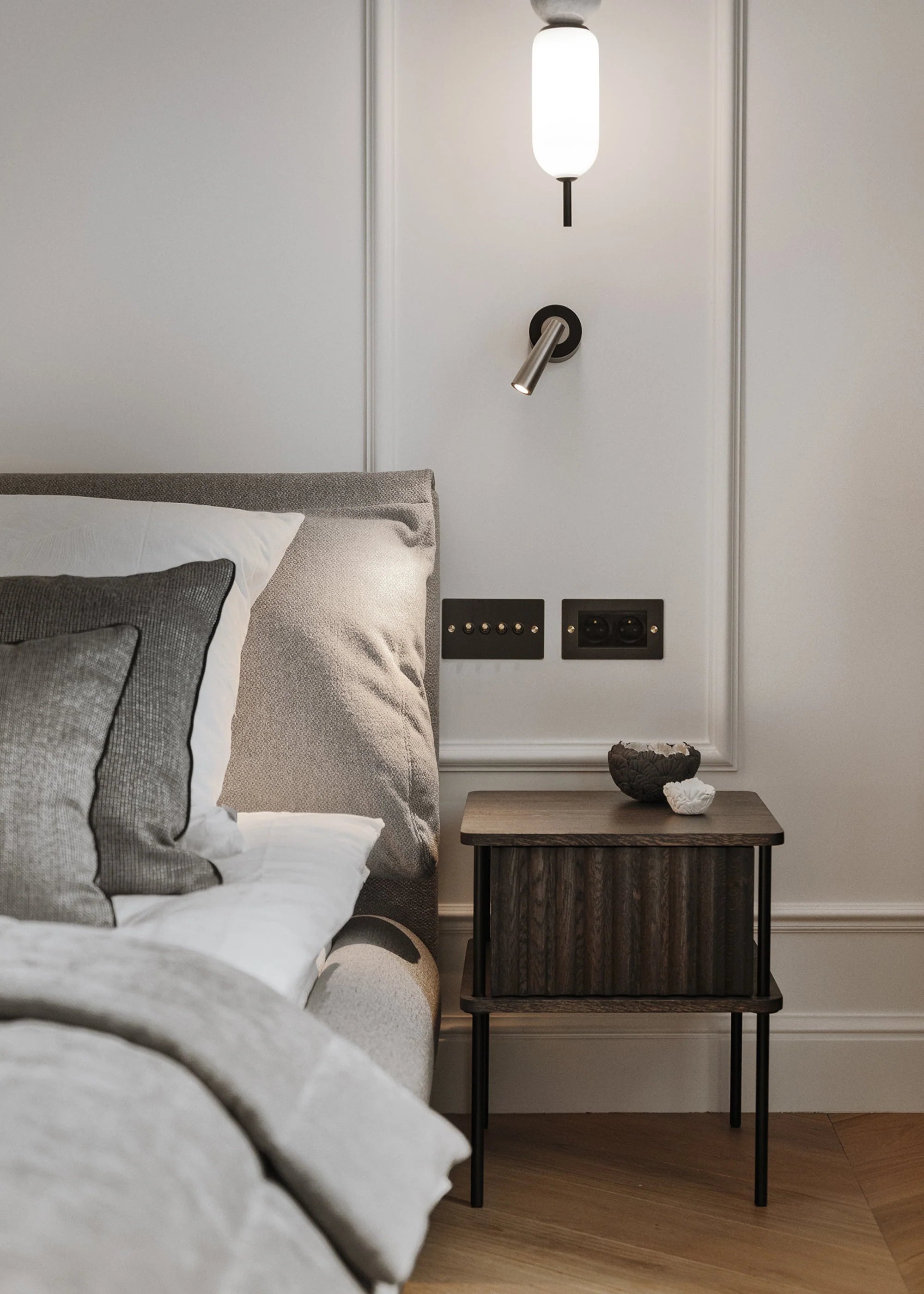 Elevated above the floor, Maya gains visual lightness while offering a solid construction made entirely of solid wood. The practical drawer allows for convenient storage of everyday items, making this nightstand not only an aesthetic but also a fully functional element of bedroom furnishings.