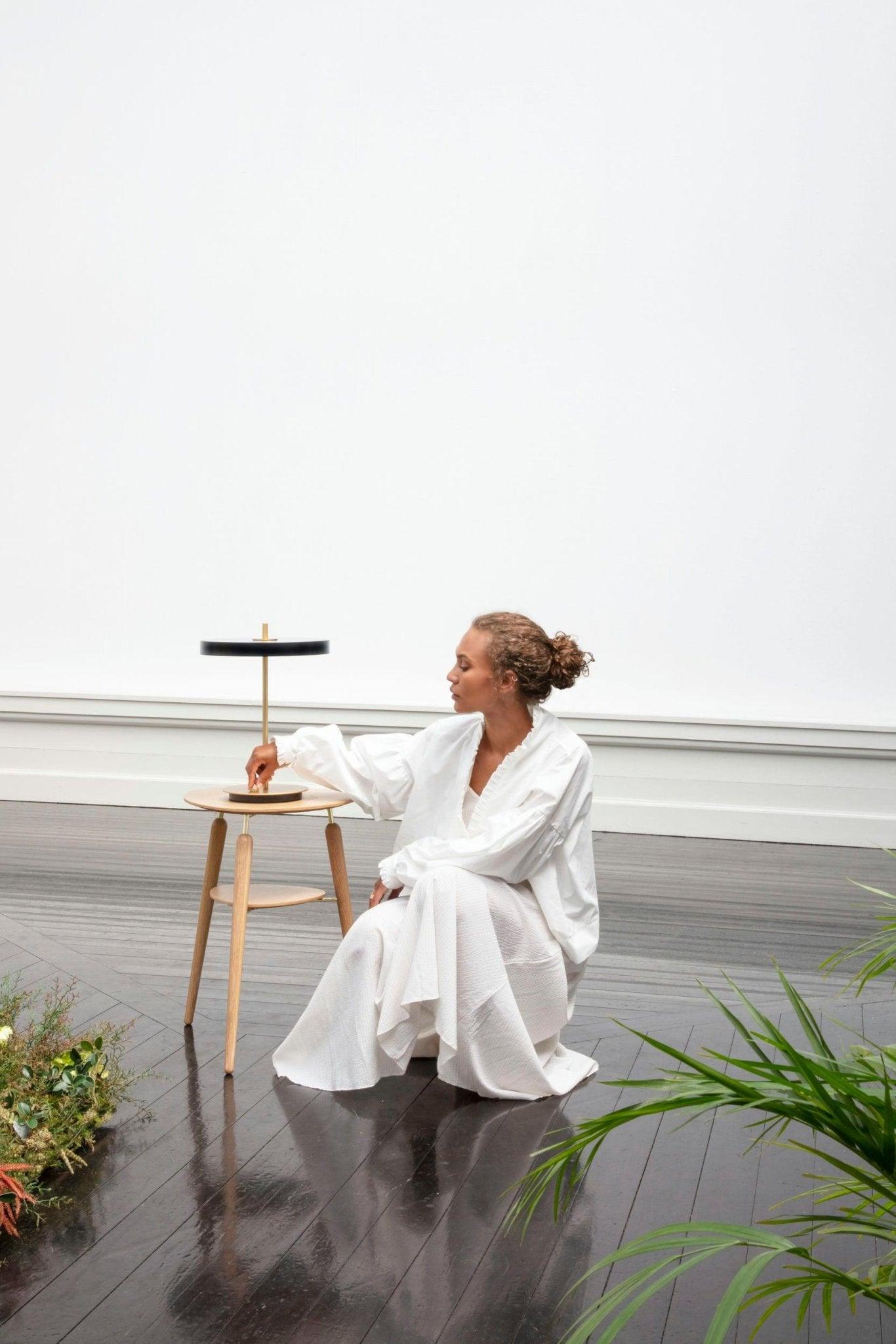 Table lamp Asteria Table is a unique element of decor, equipped with a built -in LED panel with a diffuser, which ensures gentle lighting of the room. The brass stem passing through the lamp adds elegance and solidity of the whole structure, giving it a compact look.