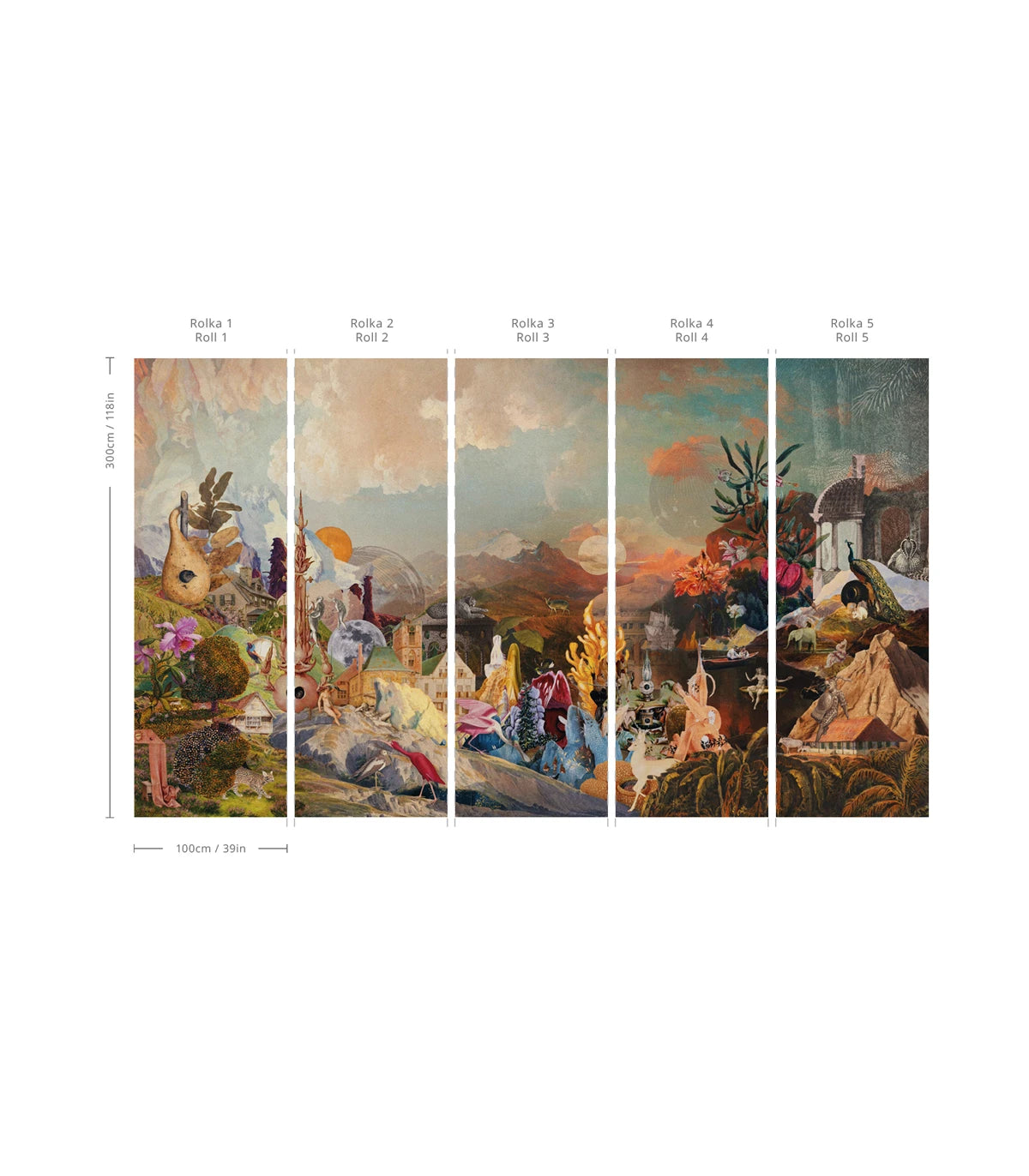 Non-woven wallpaper THE SURREAL VALLEY green with blue