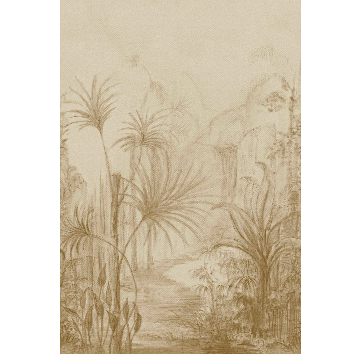 Brown linen-like mural with a plant landscape of a palm grove ARILLE