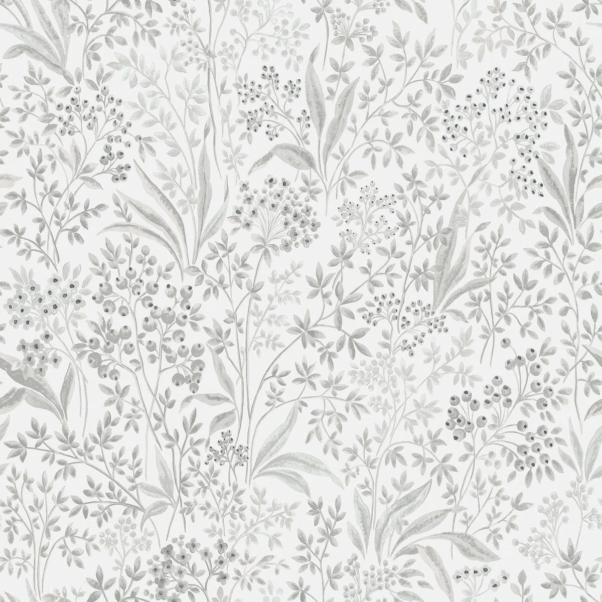 Non-woven paper wallpaper with a botanical pattern NOCTURNE light gray