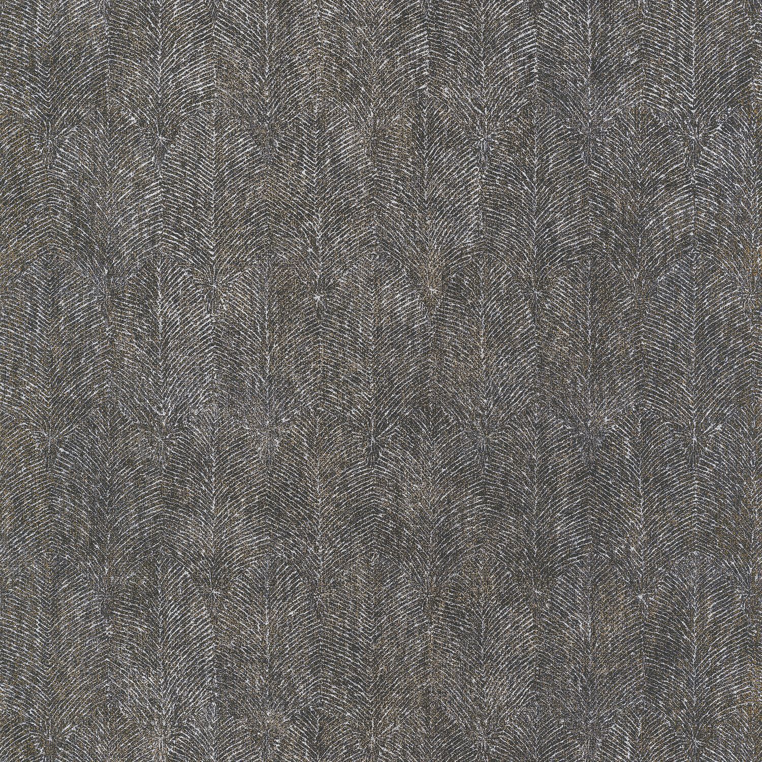Structural wallpaper with a plant leaf motif ISABELLINE - NOIR dark brown