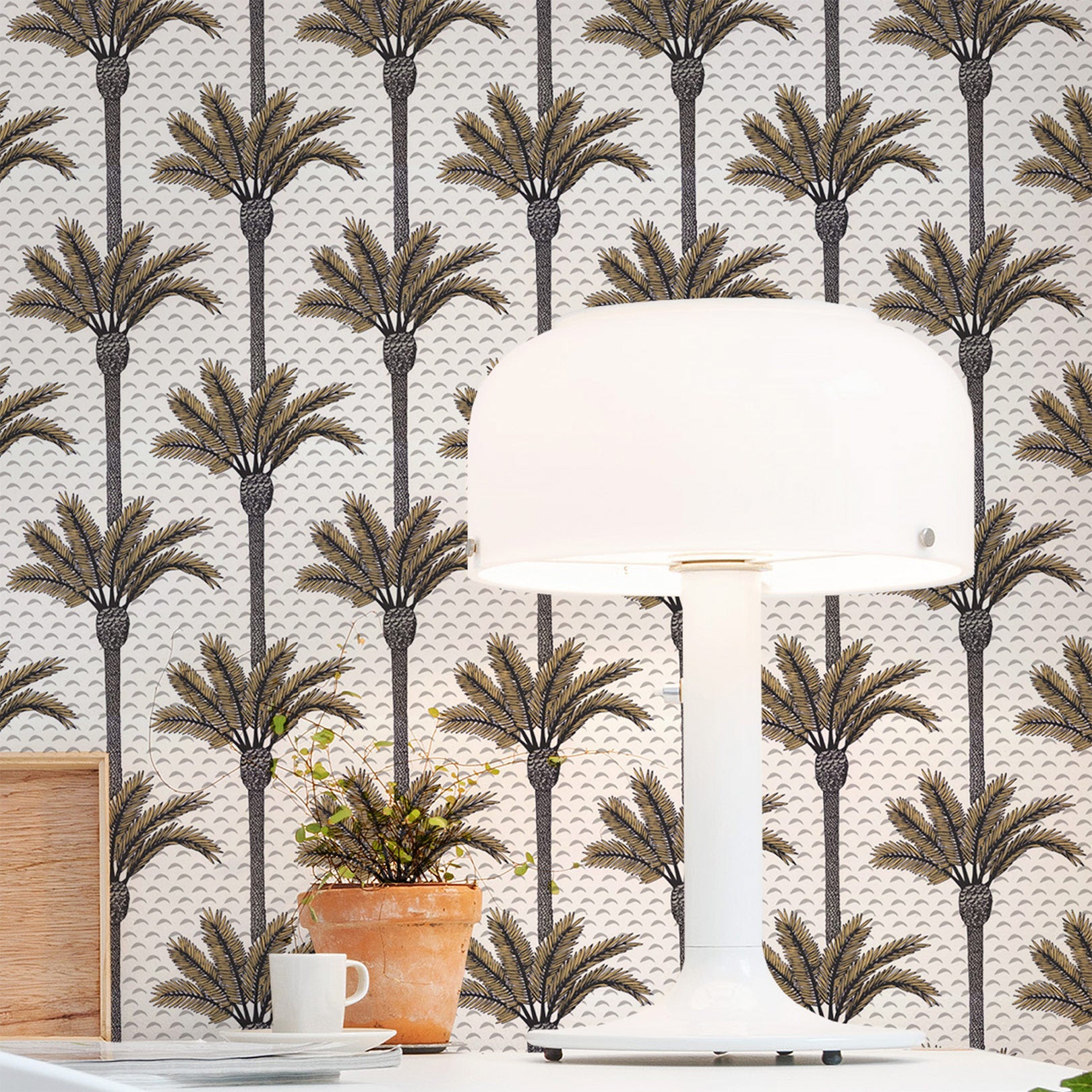 Structural wallpaper with a plant motif in palm ATLAS - IVORY ivory