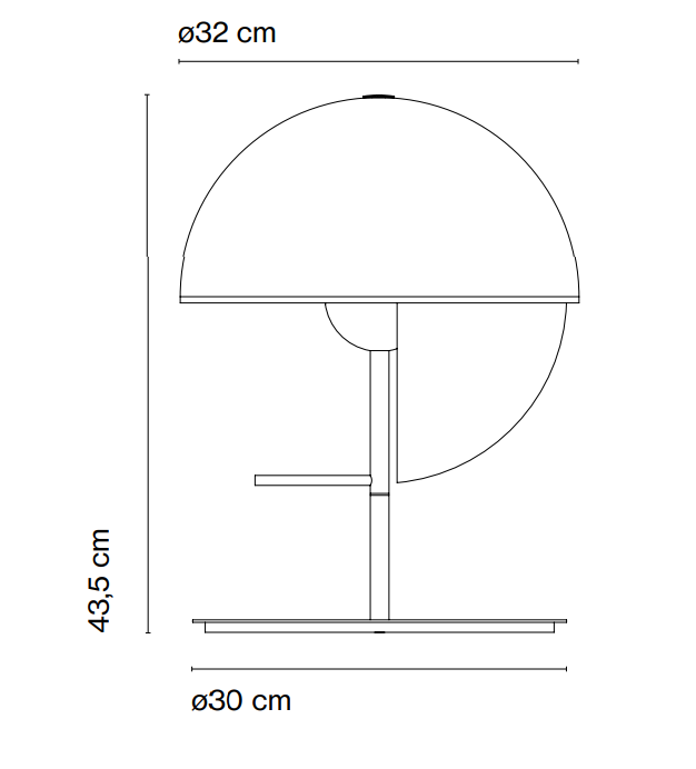 Theia has two faces: to discover them, just turn the luminaire around its central axis. It can be directed in your direction to use it as a lamp for reading, or towards an object or wall, creating a subtle, indirect light. Because theia metal lamp shade is completely opaque, this rotary movement completely changes the perception of this element. The formal design of Theia lamp is elementary and streamlined: two hemispheres, one placed horizontally and the other vertically, which intersect with each other.