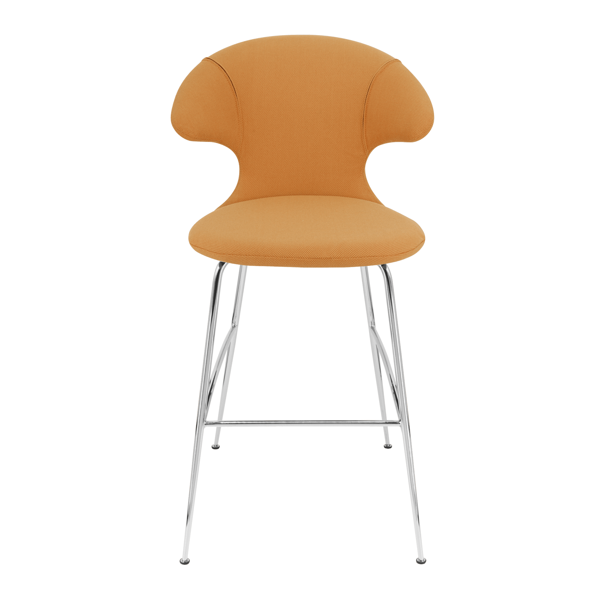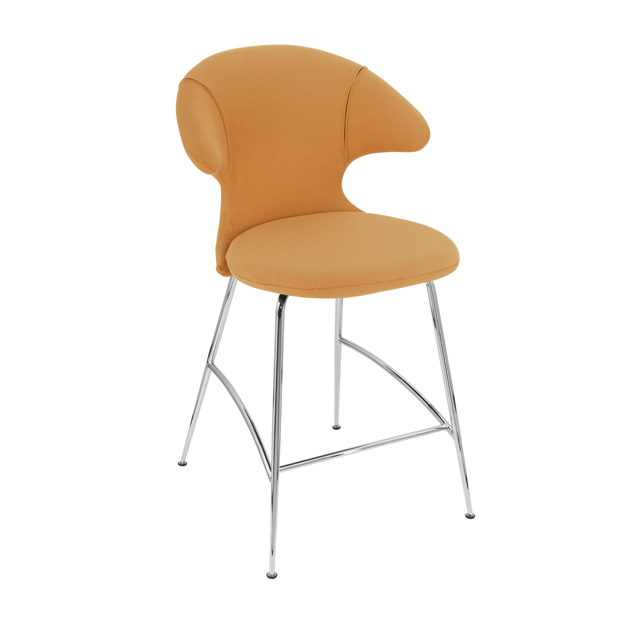 The stool Time Flies is available with legs in gold, silver, and black, offered in 17 carefully selected shades of the fully recycled Horizons fabric. Additionally, the chair is available in two cozy variants from the Teddy Bear fabric collection: plush brown and plush white.