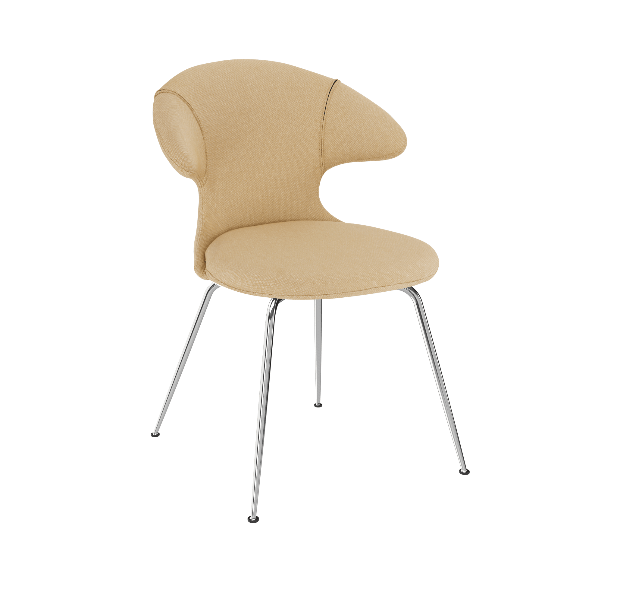 Chair is available in 17 carefully selected colors of the Horizons fabric, which is 100% recycled or in 2 fabrics from the Teddy collection. Additionally, the leg options include brass, chrome, or black finishes, allowing the chair to match various interior styles. This combination of aesthetics, functionality, and a sustainable approach to materials makes Time Flies a unique and durable offering.