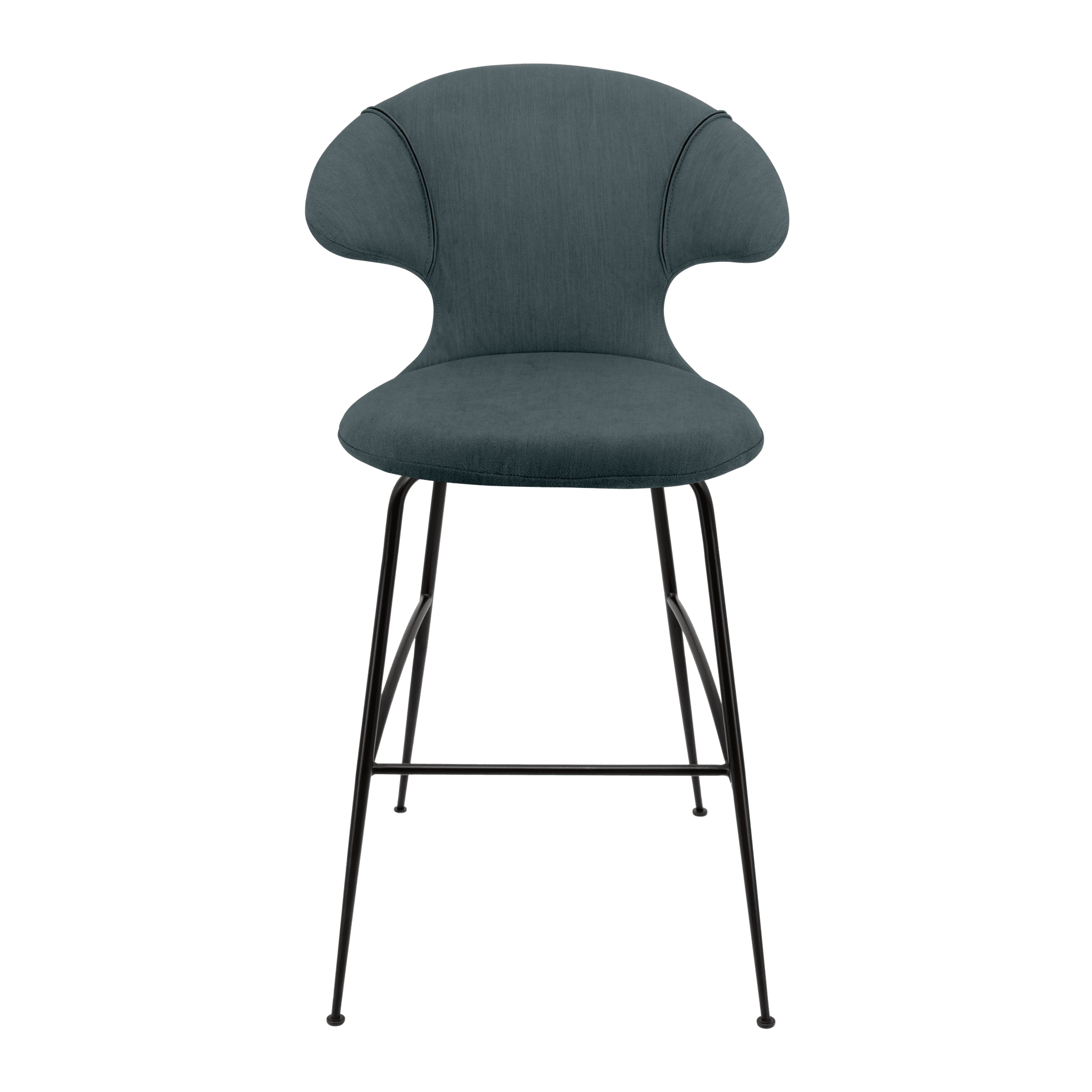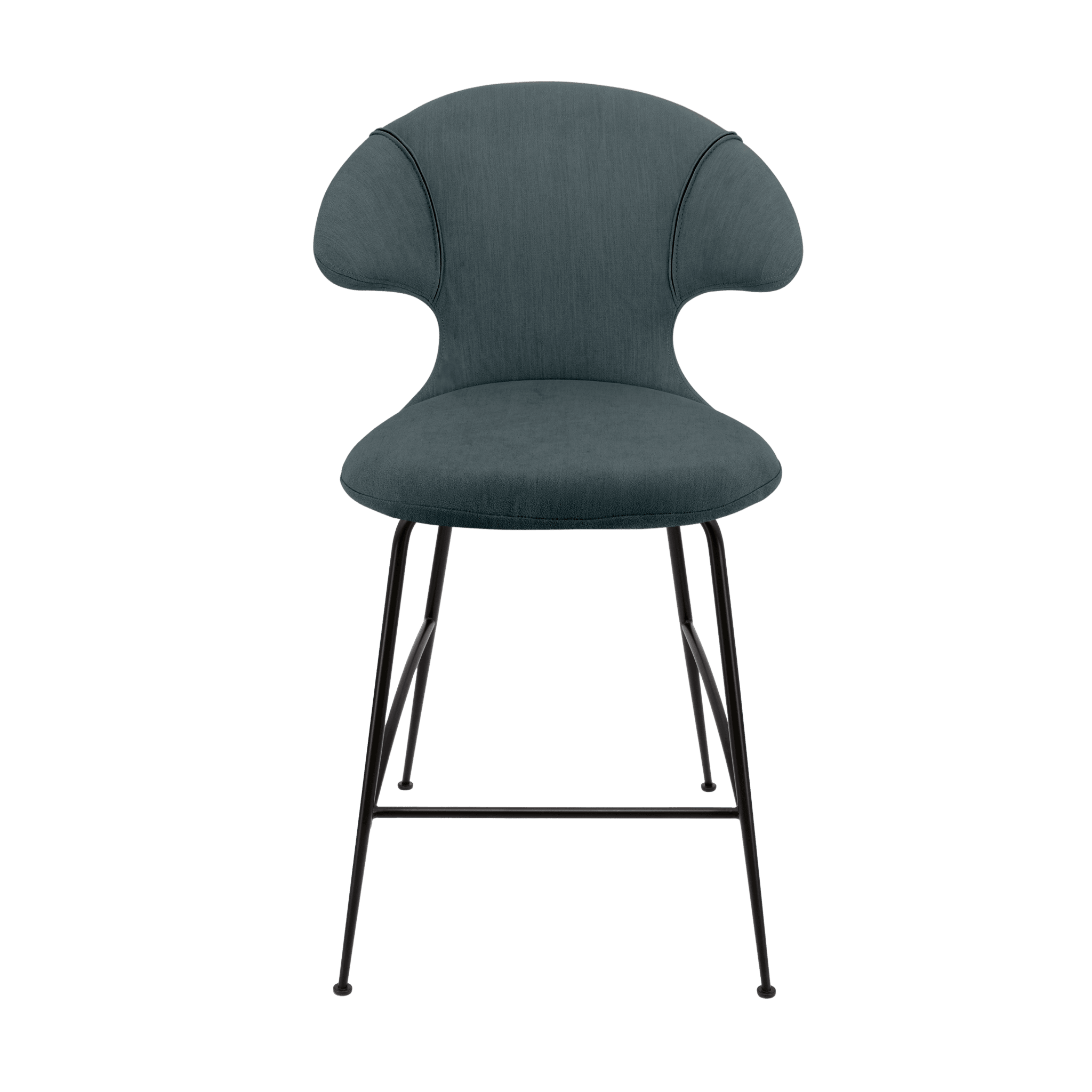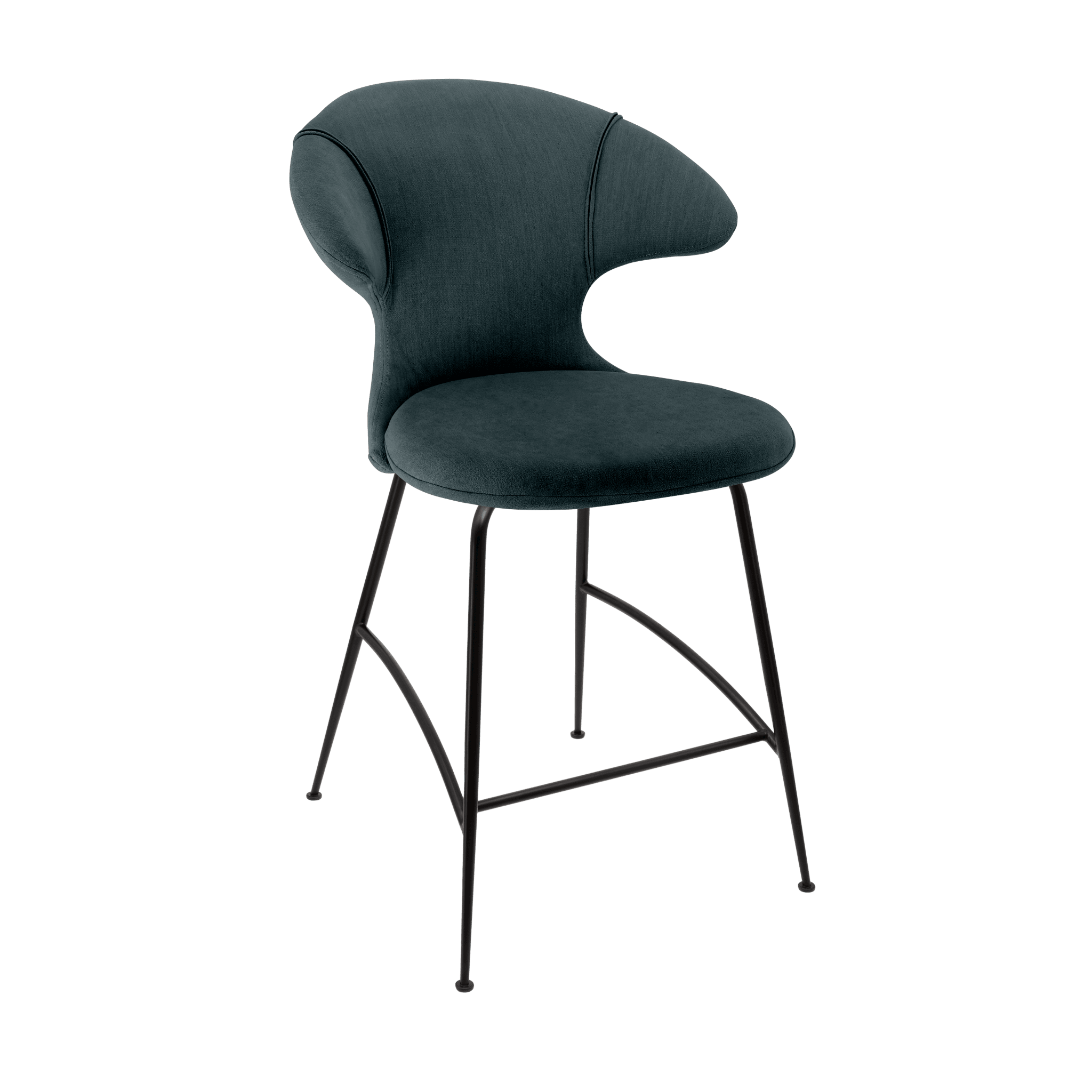 The stool Time Flies is available with legs in gold, silver, and black, offered in 17 carefully selected shades of the fully recycled Horizons fabric. Additionally, the chair is available in two cozy variants from the Teddy Bear fabric collection: plush brown and plush white.