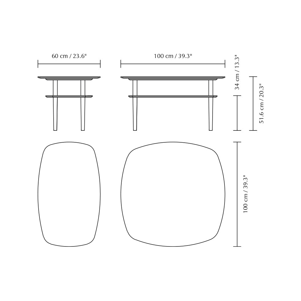The Together coffee table is available in two variants: with a square or rectangular top. Both models are available in oak, dark oak and black oak.