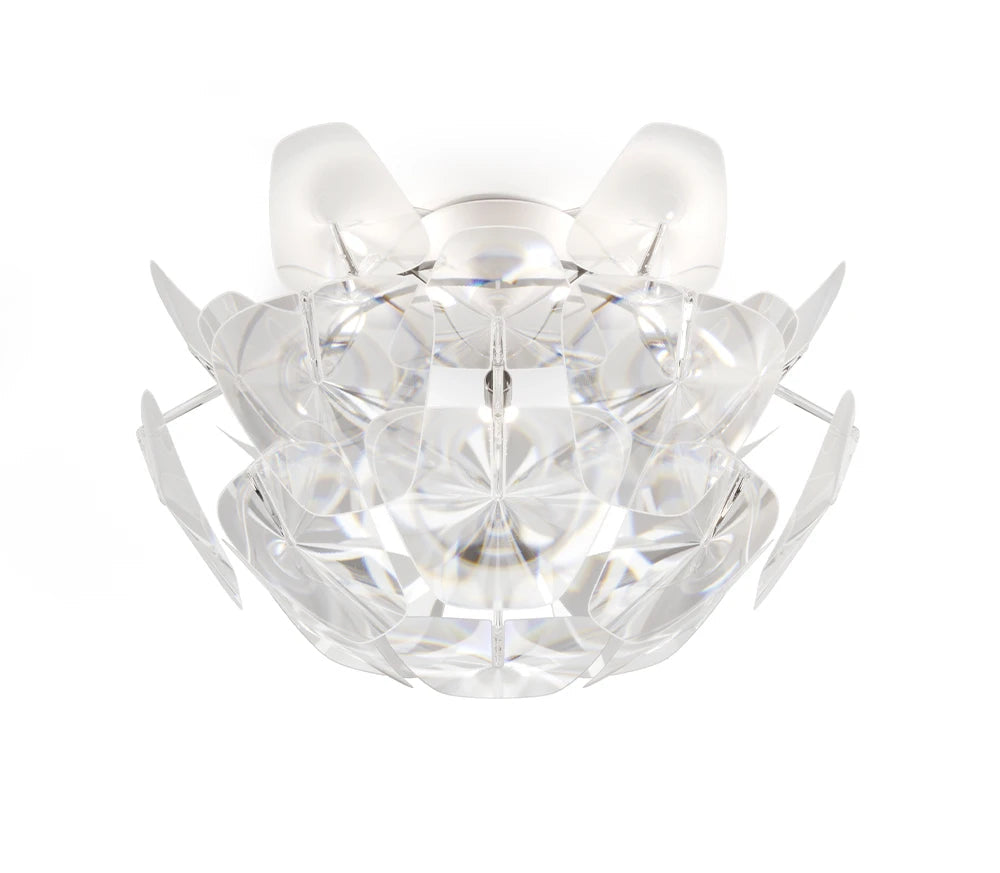 Ceiling lamp Hope is a unique lighting project that combines modern technologies with classic elegance. Made of polycarbonate petals equipped with Fresnel lenses, the lamp optimizes the reflection and distribution of light, ensuring an unusual visual effect while reducing energy consumption. Thanks to advanced optical technology lamp It creates subtle light reflections that give the interior a luxurious and sparkling look.