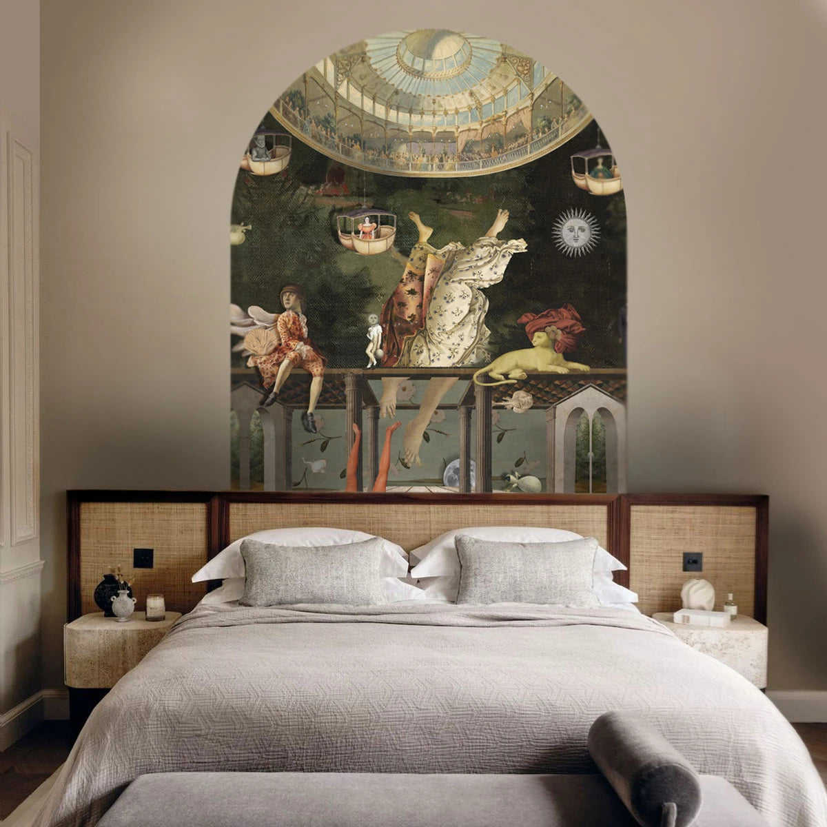 Non-woven arch-shaped mural CAROUSEL green with gold