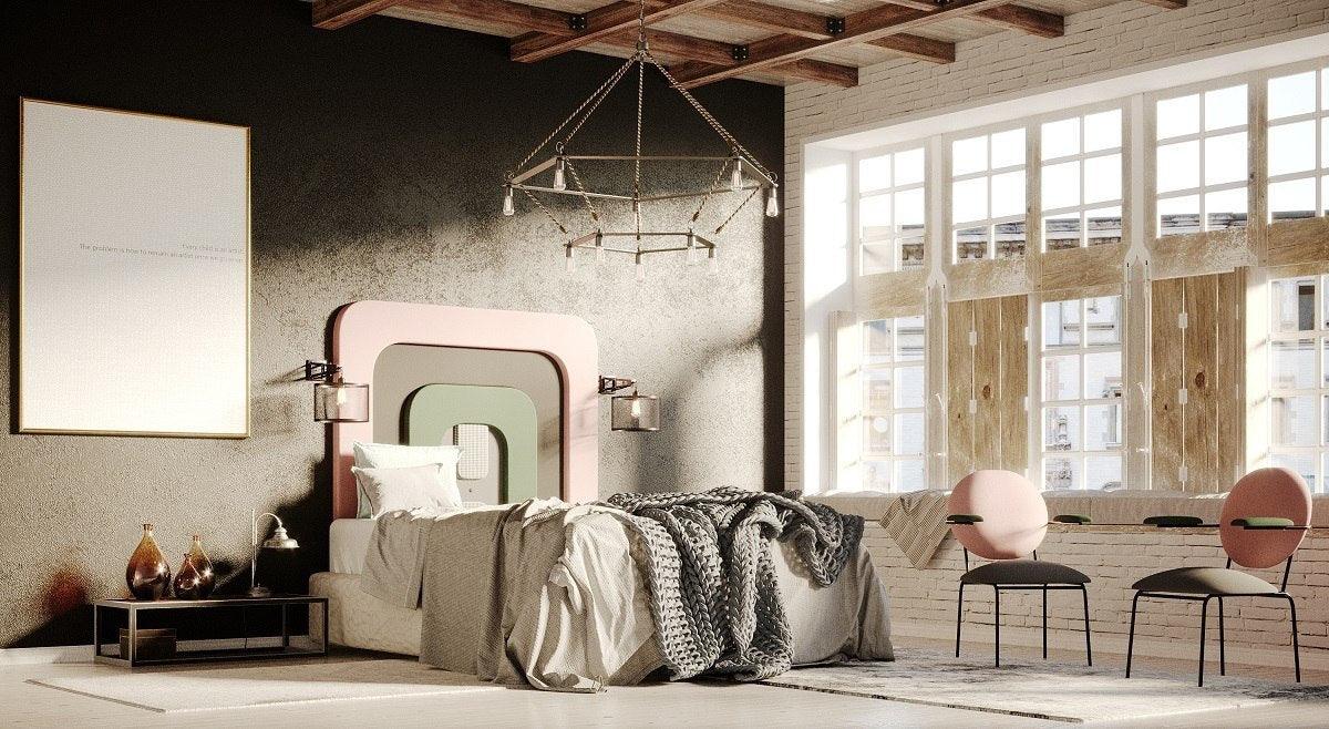 Łóżko tapicerowane PLUM 4 różowy z brązowym Happy Barok    Eye on Design