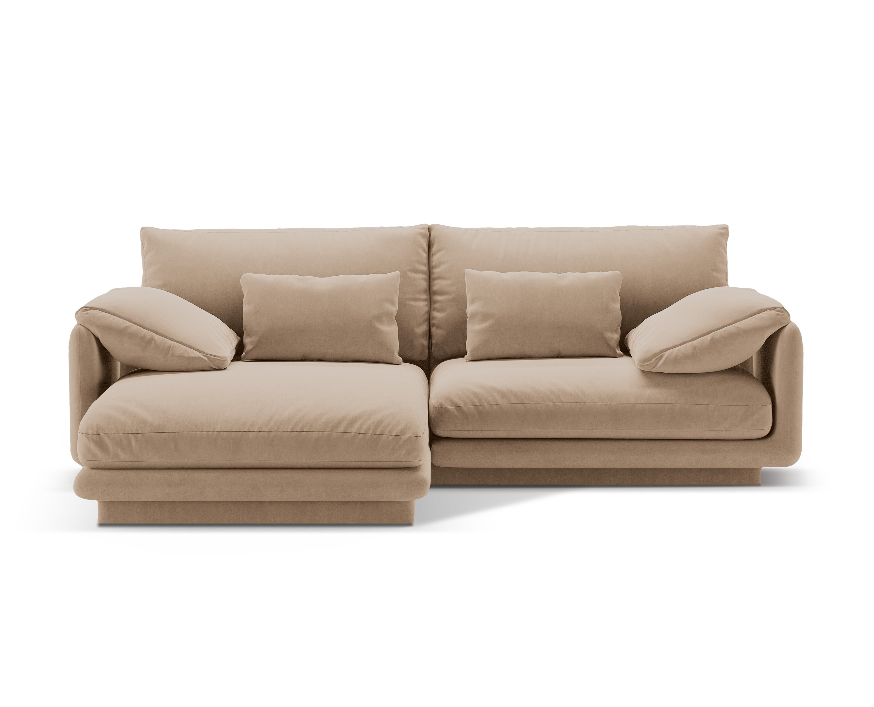 Corner Torino is a combination of classics with a modern design, which introduces elegance and comfort to the interior. Its design combines the lightness of the proportion with exceptional functionality, which makes it perfectly fit into various arrangements. The corner is distinguished by a subtle, but at the same time innovative detail - moving armrests in the form of pillows that can be tilted, adapting the furniture to individual needs. The armrests are sewn with the sides of the corner, which gives it consistency and elegance. The upholstered base of the furniture and the lack of legs make the corner seems to float above the ground, which gives it lightness and modern character.