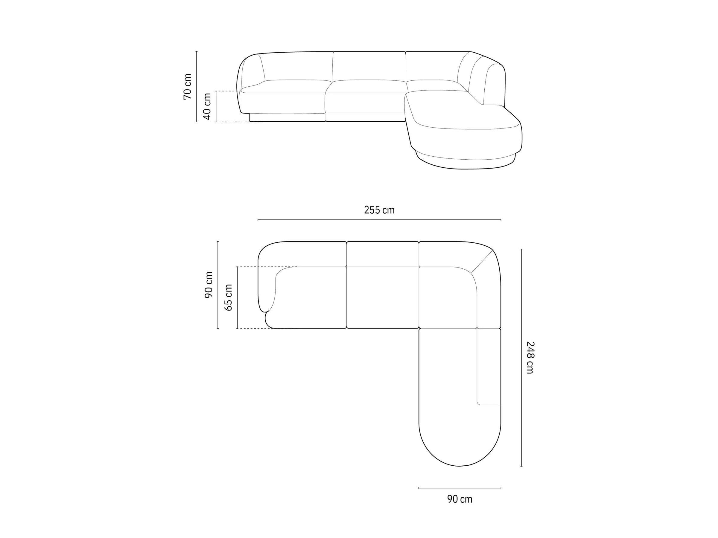 Velvet corner sofa for 6 people right-facing MILEY light gray