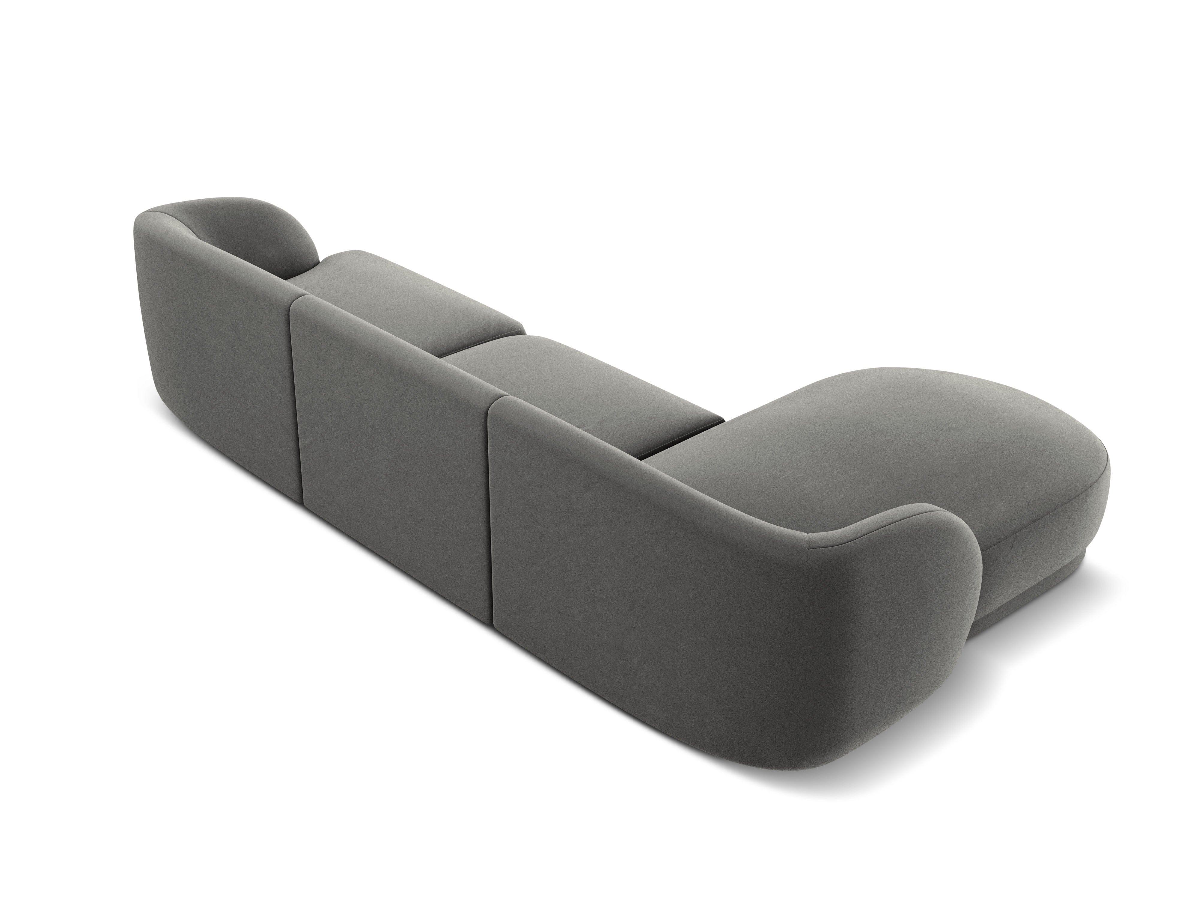 Velvet corner sofa for 4 people, left-sided, MILEY light gray