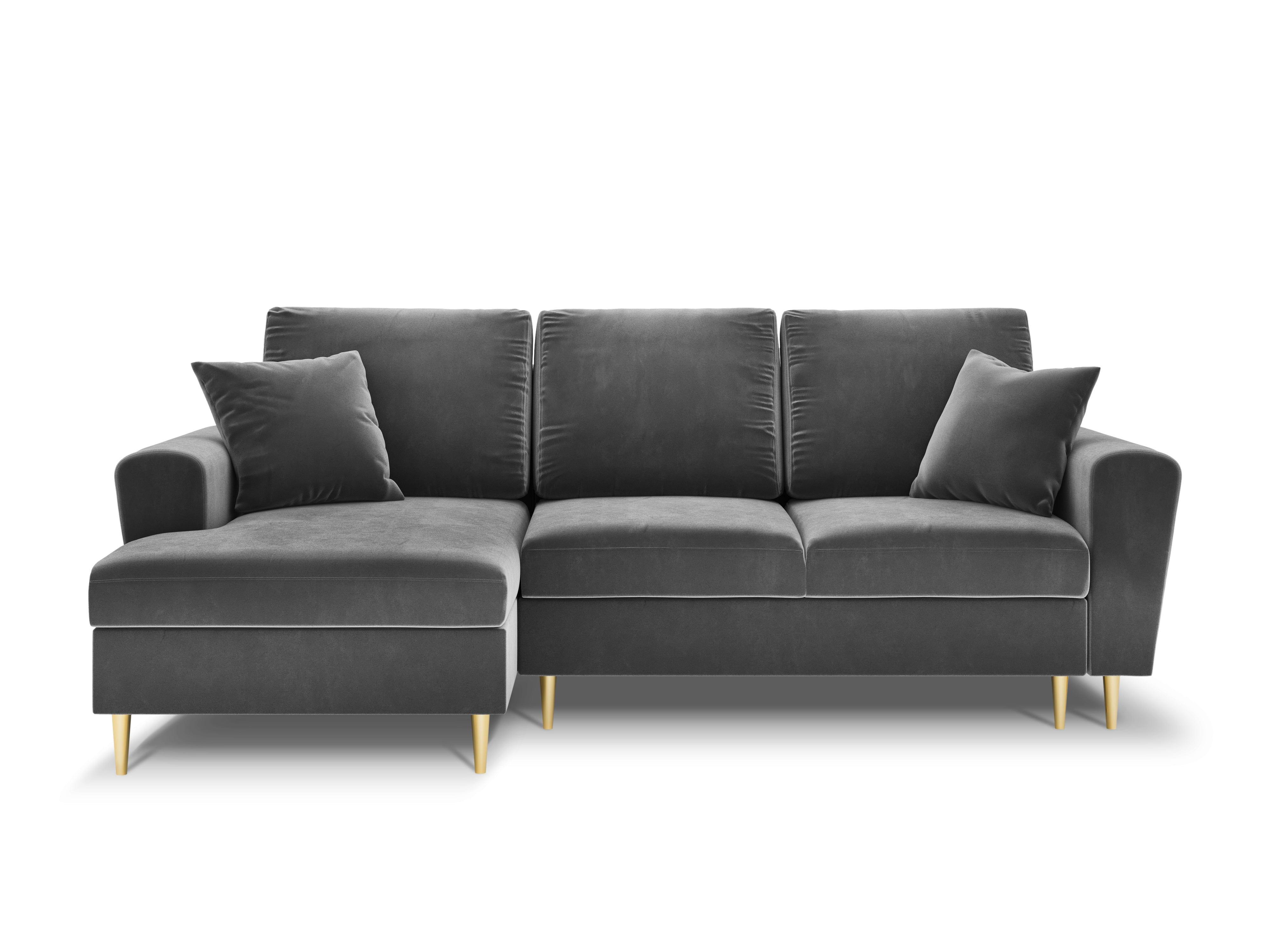 Velvety left -hand corner with Kyoto light gray sleeping function with a golden base