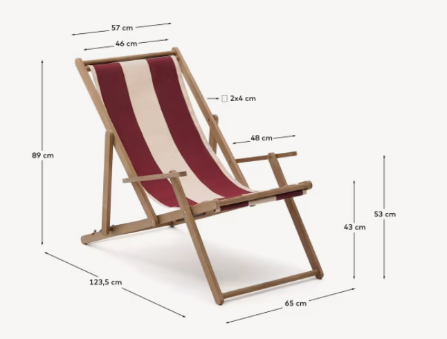 Vilara burgundy-beige deckchair with an acacia base