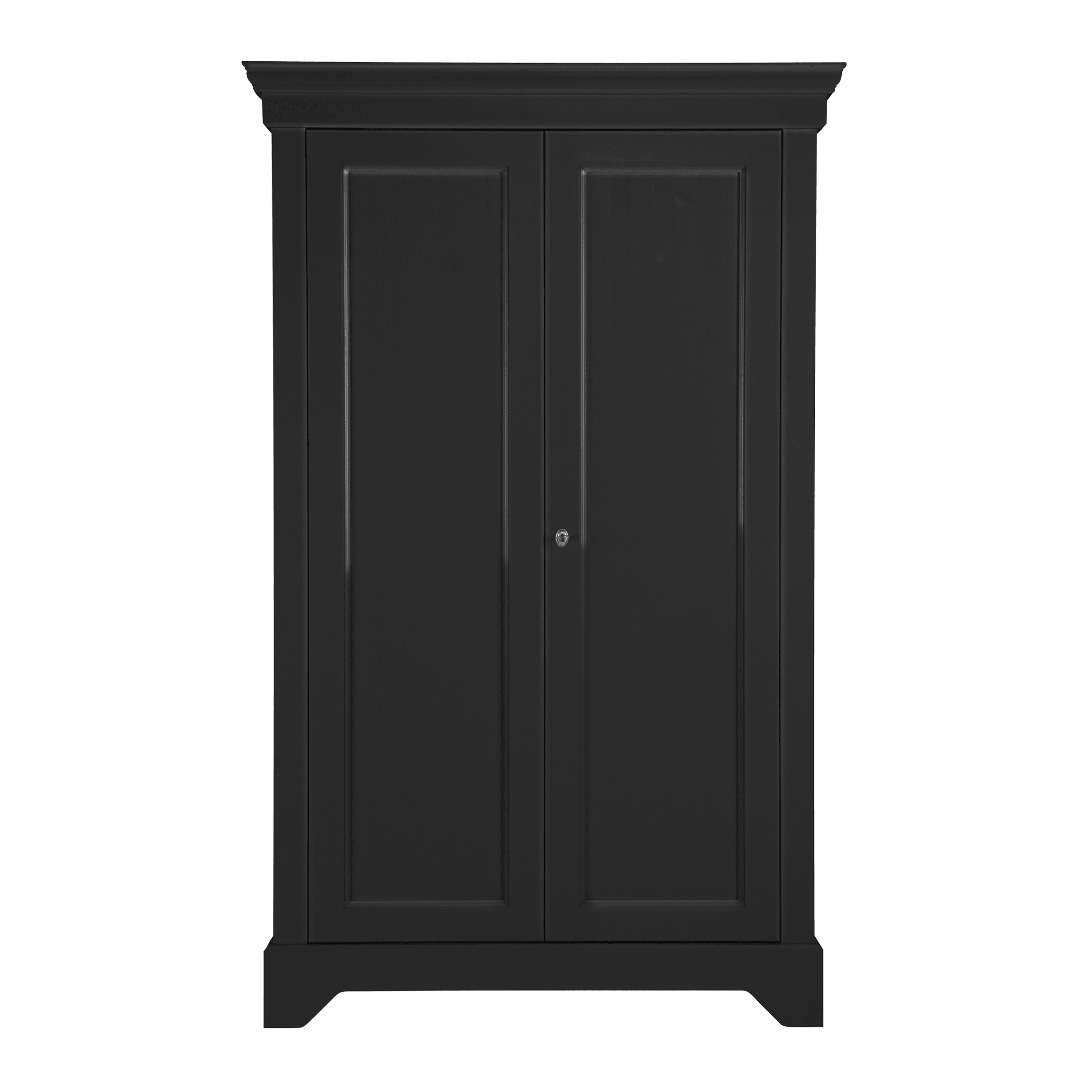 The black Isabel wardrobe is made from durable materials that ensure its longevity and durability. The two doors open easily, revealing a storage space that is spacious enough to hold everything you need - from clothes to bedding or towels.