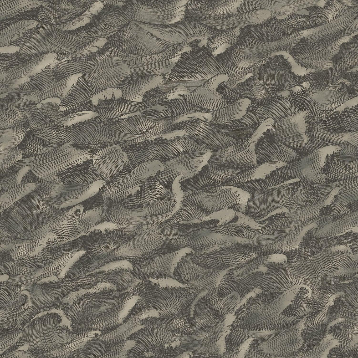 Whimsical Wallpaper with Abstract Sea Wave Pattern - Columbus Metallic Gold
