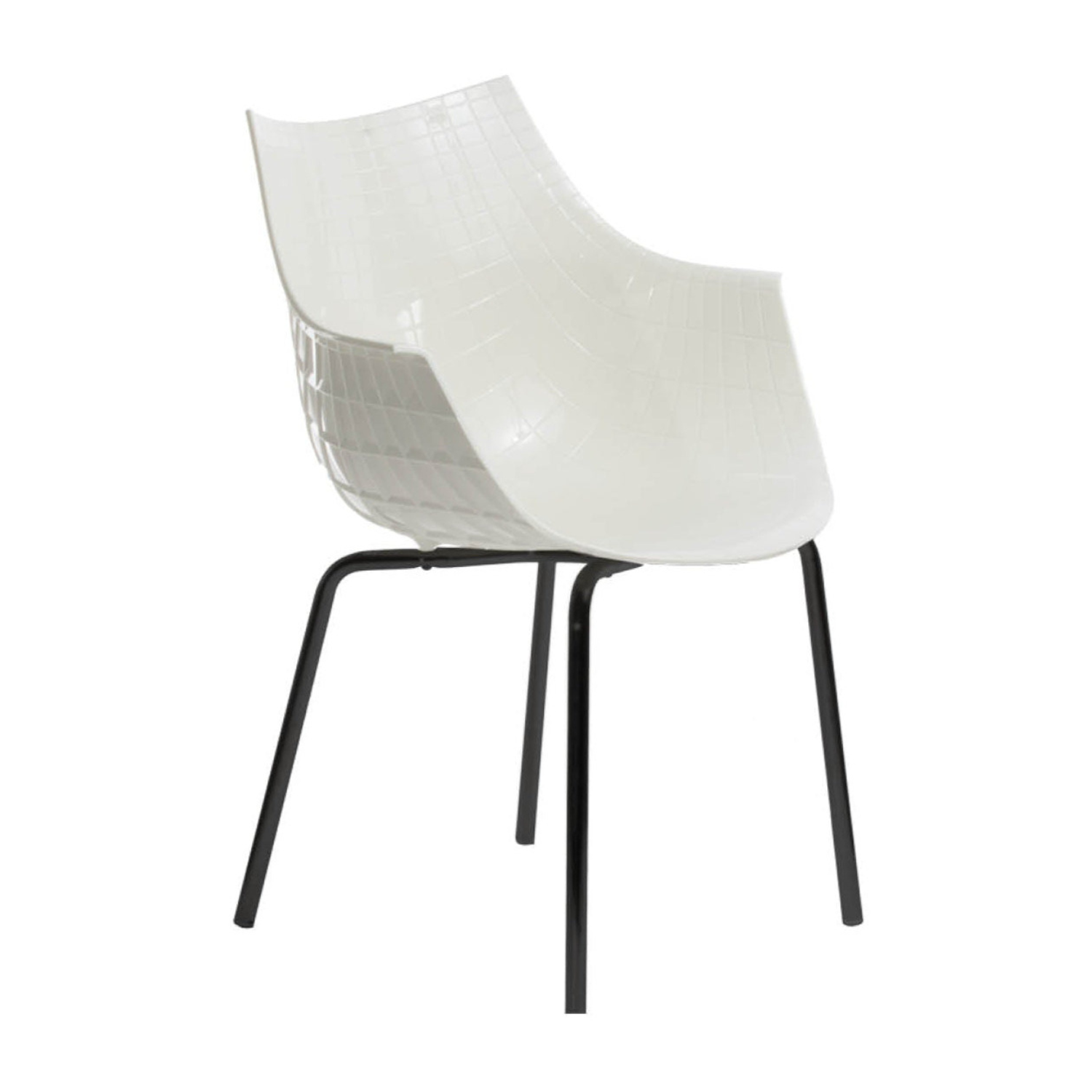 The Meridiana collection includes chairs and stools available in various color options: transparent, smoky, white, and black. Its distinctive shape makes the furniture instantly recognizable and perfectly suited for both dining and office spaces.