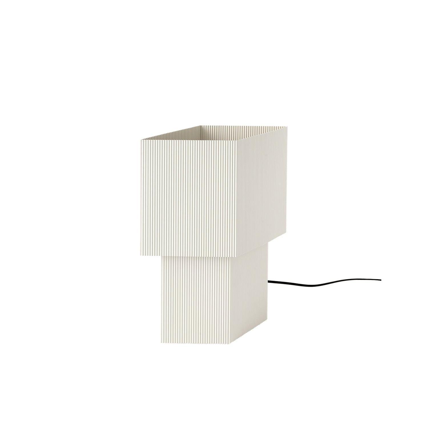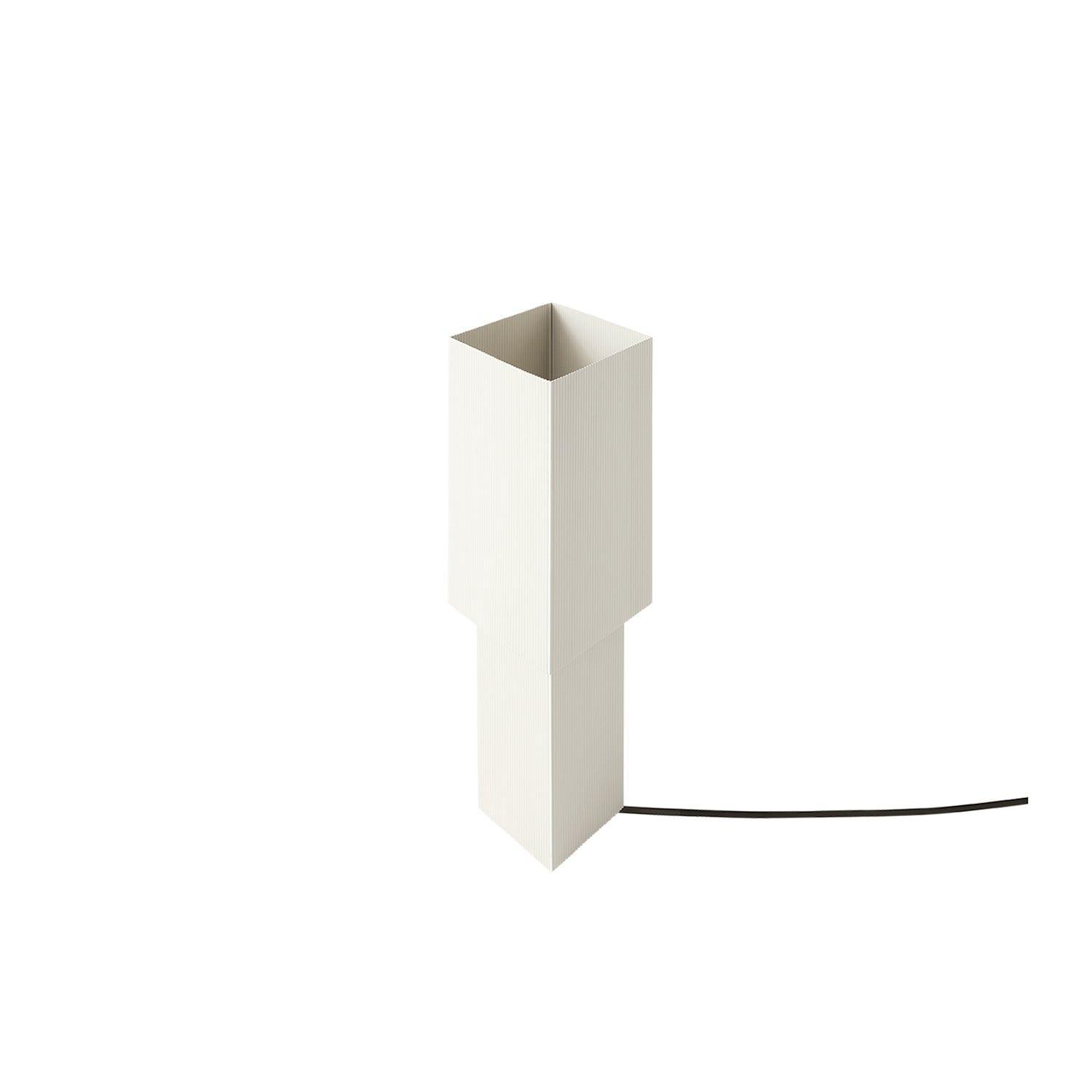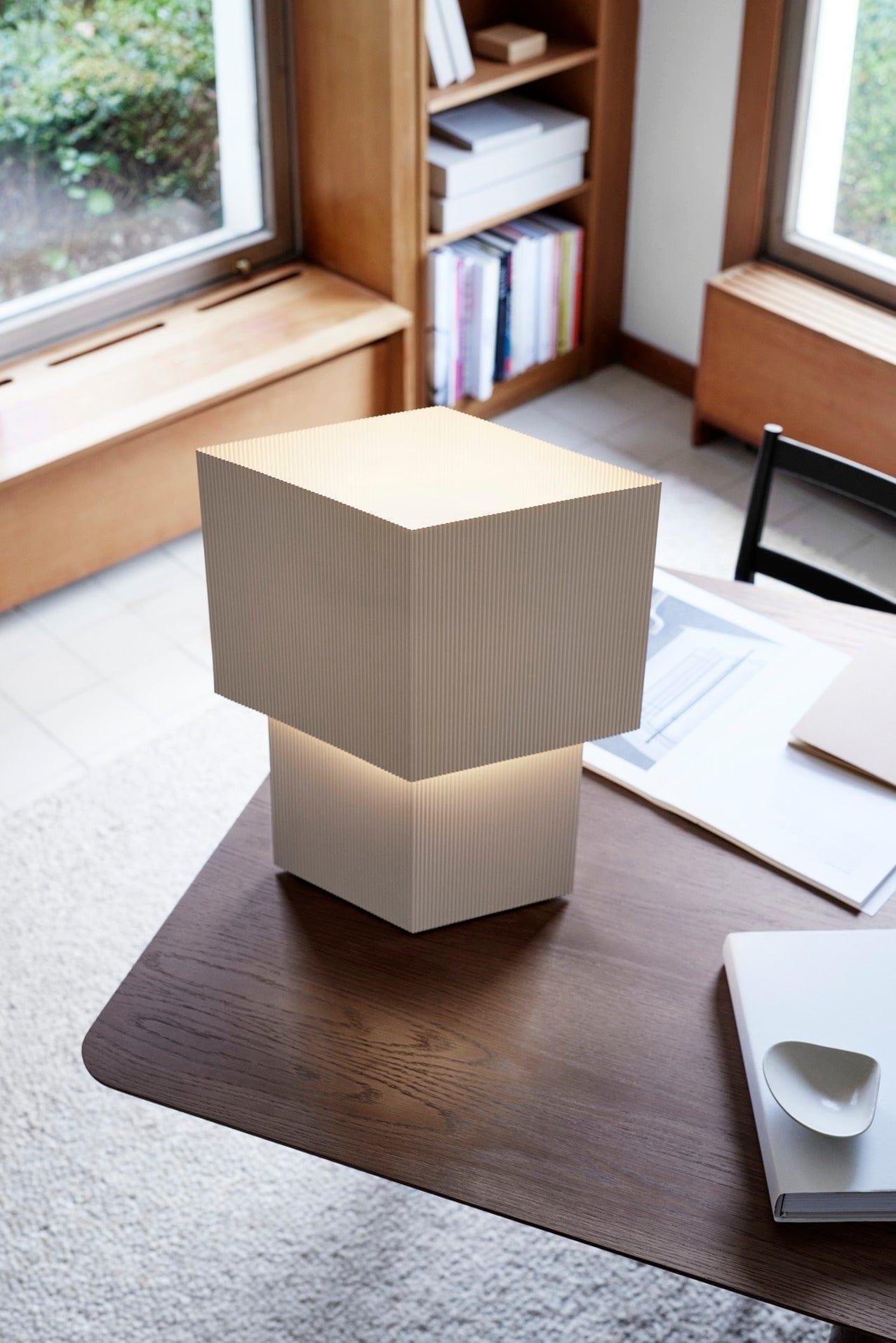 Table lamp Romb is an example of thoughtful, sculptural design that captivates with its original form. The design is inspired by the structure of corrugated cardboard, and the distinctive geometric silhouette rests on two modules stacked one on top of the other. This makes the Romb lamp appear light and modern, while also introducing a graphic accent to the interior.