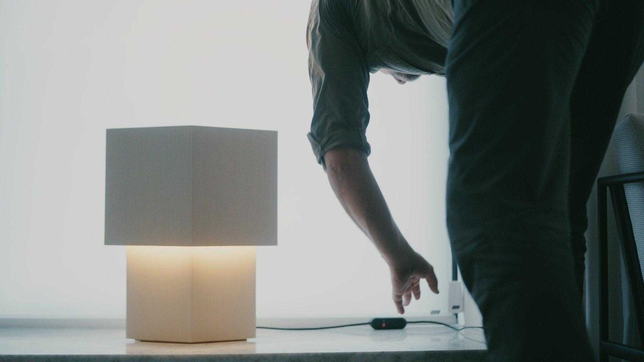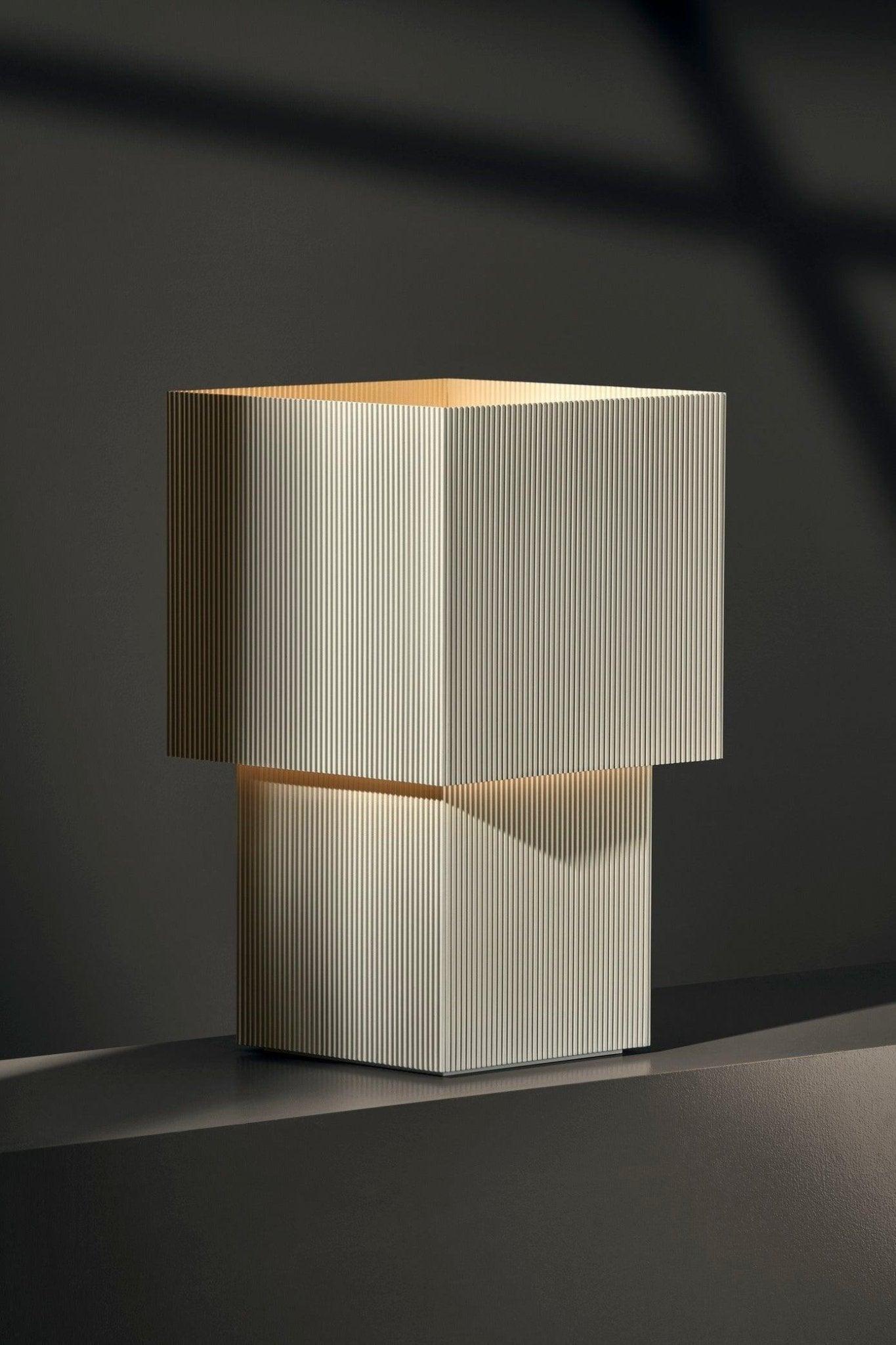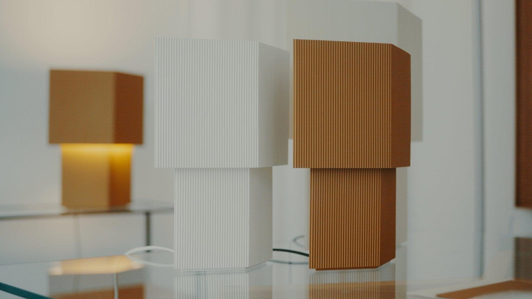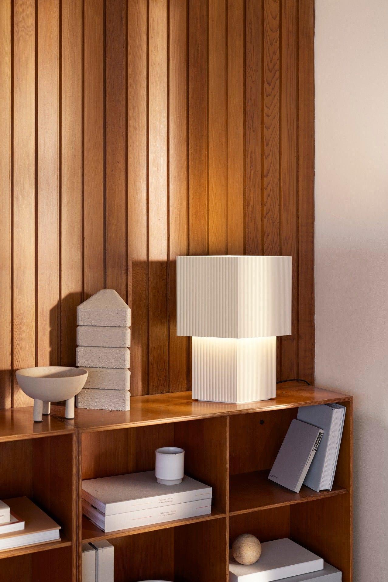 Table lamp Romb is an example of thoughtful, sculptural design that captivates with its original form. The design is inspired by the structure of corrugated cardboard, and the distinctive geometric silhouette rests on two modules stacked one on top of the other. This makes the Romb lamp appear light and modern, while also introducing a graphic accent to the interior.