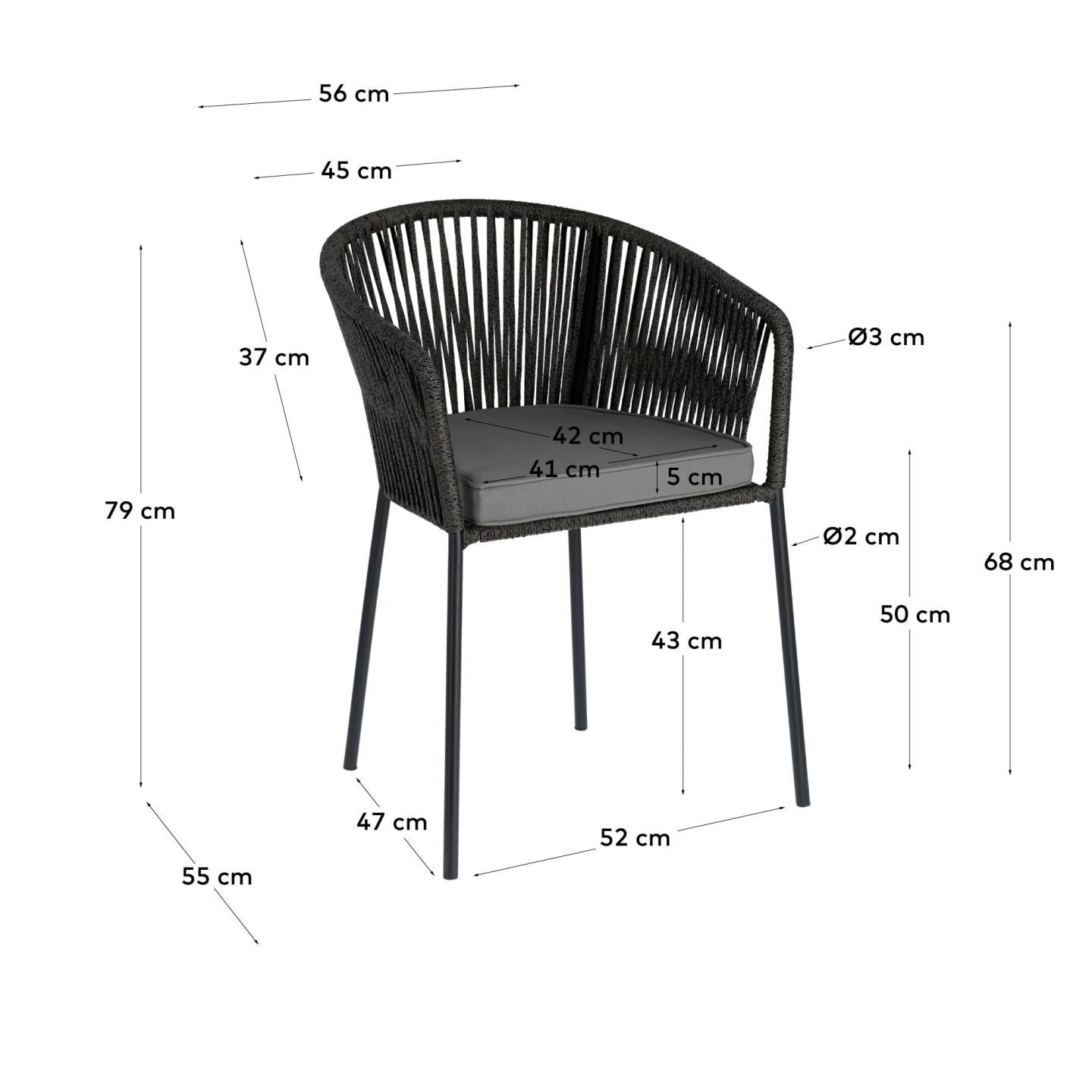 The galvanized steel construction of the chair Yanet provides durability and resistance to rust and corrosion, making it more durable than traditional steel chairs. This exceptional feature ensures that the chair retains its sturdiness even in harsh weather conditions, making it an ideal choice for use both indoors and outdoors under cover. An additional element of comfort is the removable cushion, which not only adds softness to the seat but also allows you to customize the chair to your own aesthetic preferences.