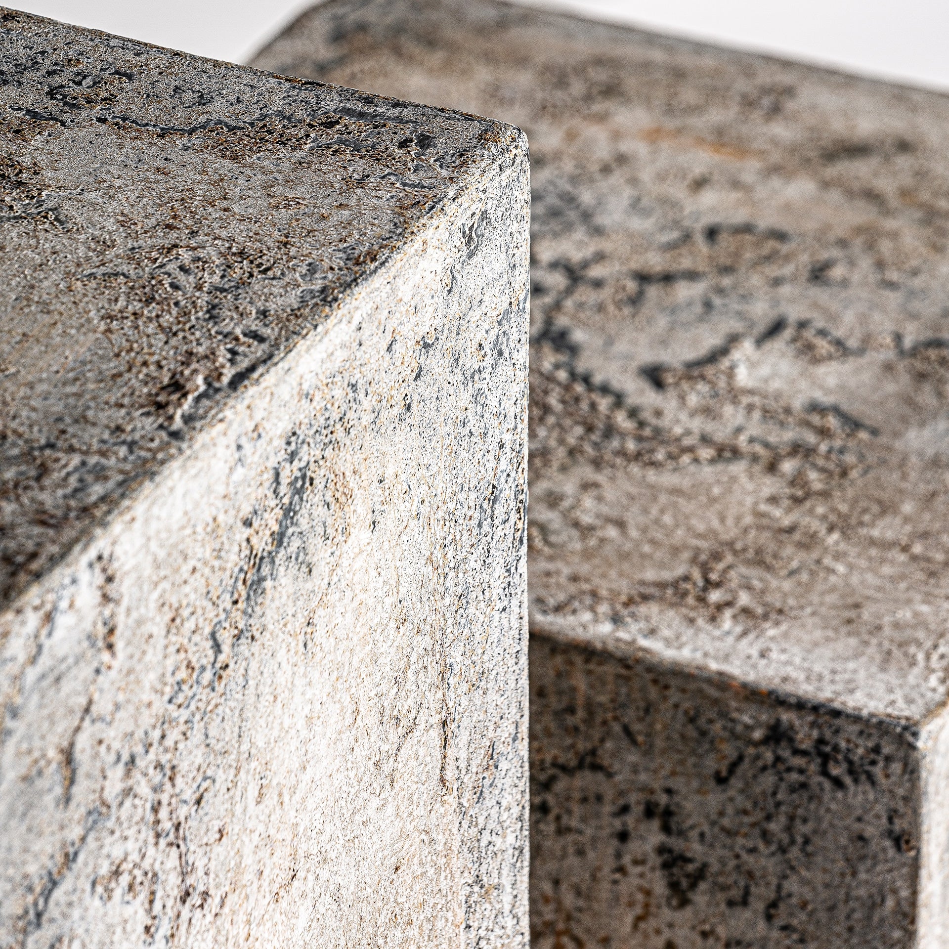 Modern side table set Arvit is made from durable material, ensuring stability and longevity. Their simple, vertical form beautifully showcases items, adding elegance and an organized look to the interior. This elegant side table set is the perfect choice for those who appreciate original, slightly raw forms with a decorative character.