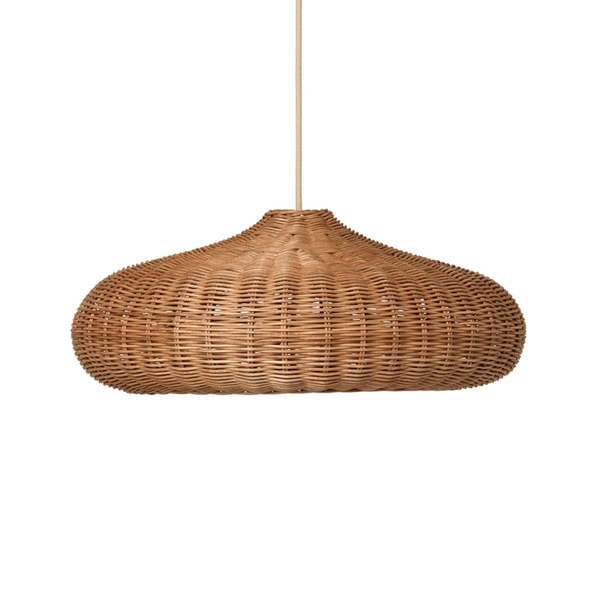 Stínidlo Braided Disc je impozantní, velký prvek osvětlení s organickým tvarem, ručně vyrobený z pleteného ratanu. Díky své přirozené formě a materiálu vnáší teplo a útulnost do každé místnosti. Toto stínidlo se ideálně hodí jako centrální bod interiéru, dodávající prostoru přirozený charakter a měkké, rozptýlené světlo.