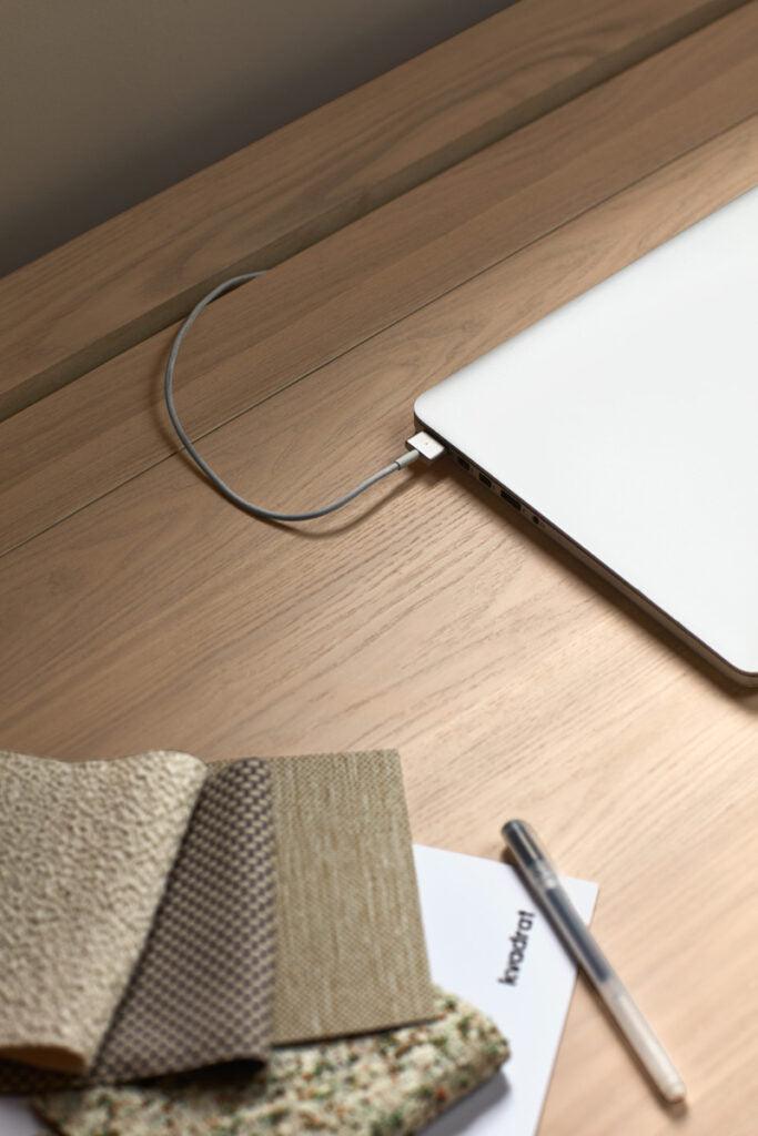 Biurko Atlas o drewnianym wykończeniu, to solidny i wytrzymały mebel, w którym harmonijnie współgrają kontrasty form i stylów, nadając mu niezwykły charakter. Wyposażone w cztery nogi o delikatnie przesuniętym, cylindrycznym kształcie, które podtrzymują prostokątny blat, biurko prezentuje się elegancko i naturalnie.