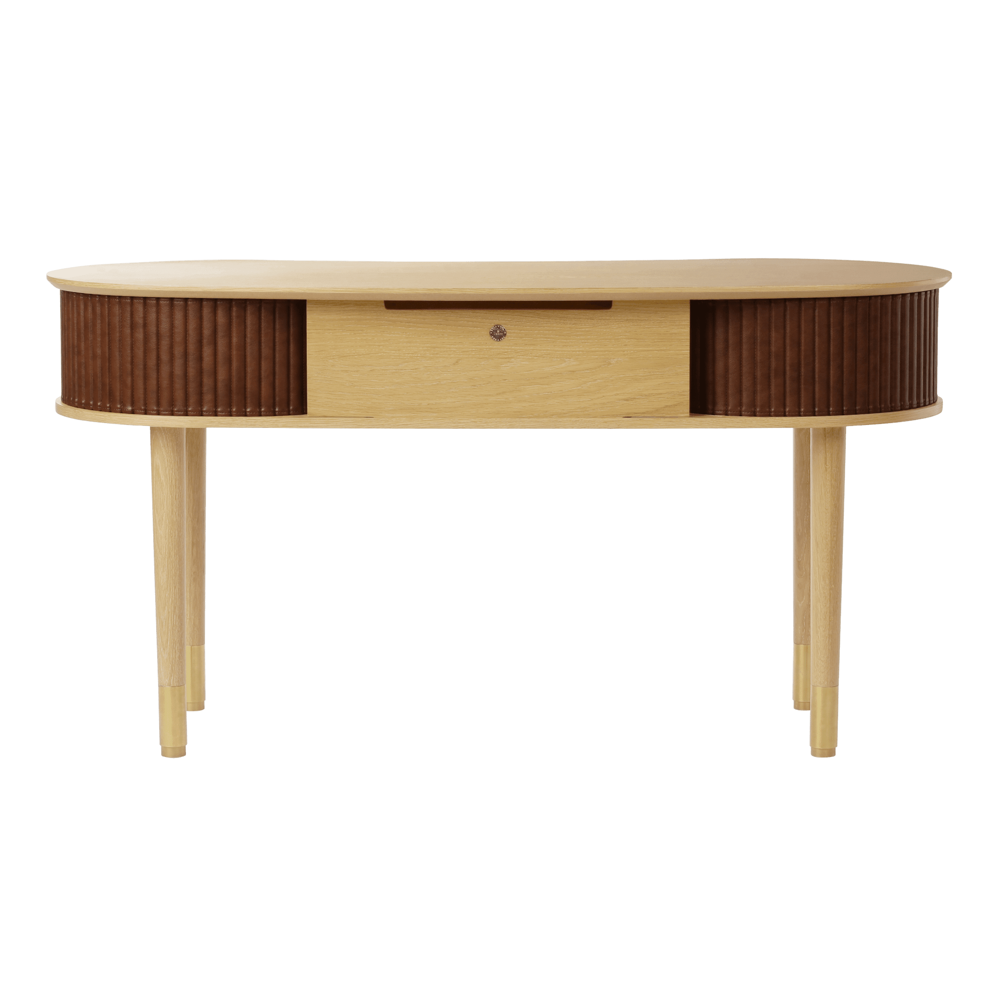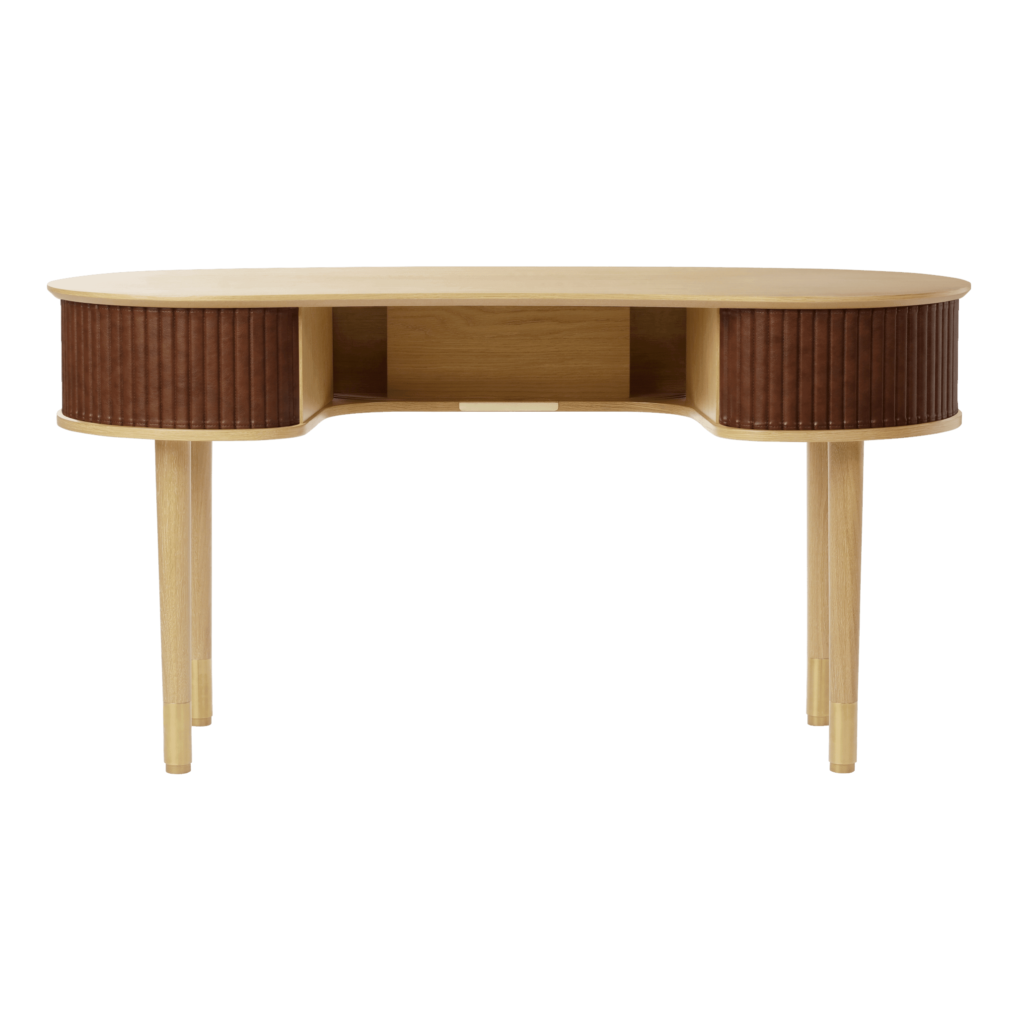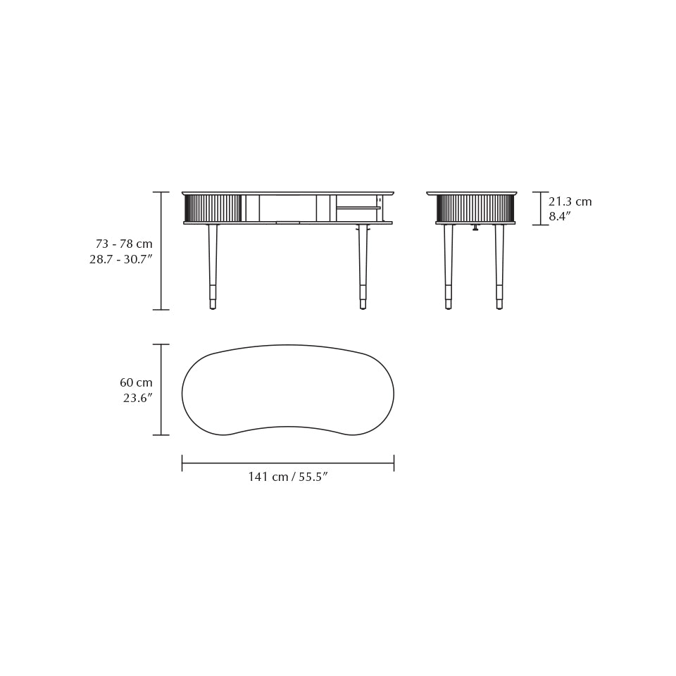 Psací stůl Audacious je nadčasový kancelářský nábytek s výjimečnými detaily, které podporují efektivitu práce a přispívají k pořádku na pracovním místě. Jeho jemně zakřivená, organická forma odkazuje na skandinávský minimalismus, zatímco posuvné látkové žaluzie dodávají nádech moderní nostalgie, vytvářející harmonické spojení mezi tradicí a současností.