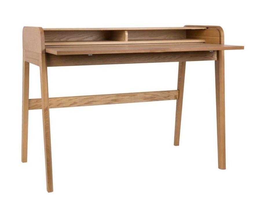 Sekretář je vyroben z černé MDF desky, pokryté černým dubem. Nohy jsou z masivního kaučukového dřeva. Díky rozdělené polici na dvě části snadno udržíte všechny dokumenty a kancelářské potřeby v pořádku.