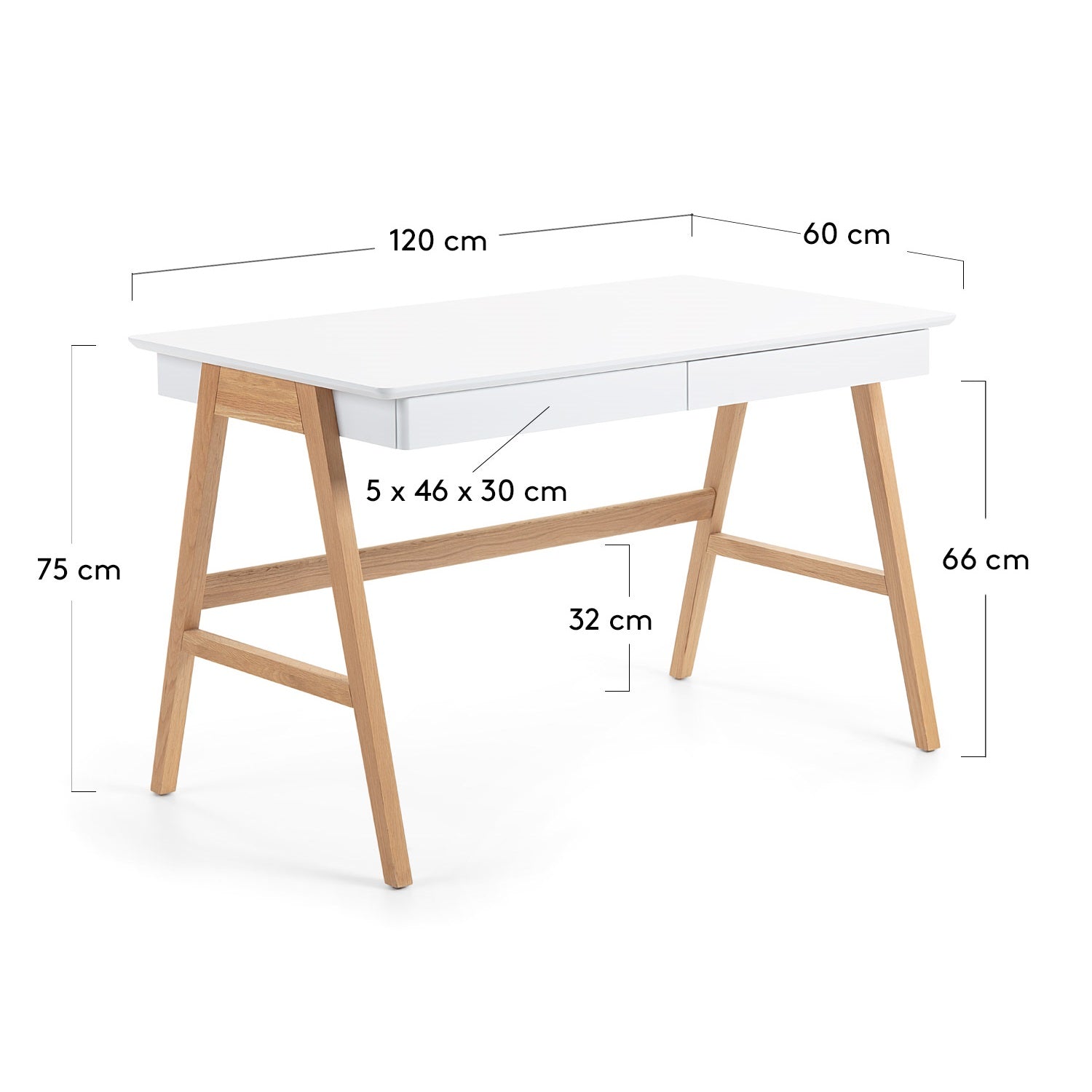 Biurko Dyana to praktyczne rozwiązanie, które doskonale wykorzystuje przestrzeń, szczególnie w małych pomieszczeniach. Jego biała lakierowana powierzchnia nadaje mu nowoczesny i świeży wygląd, natomiast jasny odcień drewna jesionowego nóg dodaje ciepła i elegancji, doskonale pasując do różnych rodzajów wnętrz.