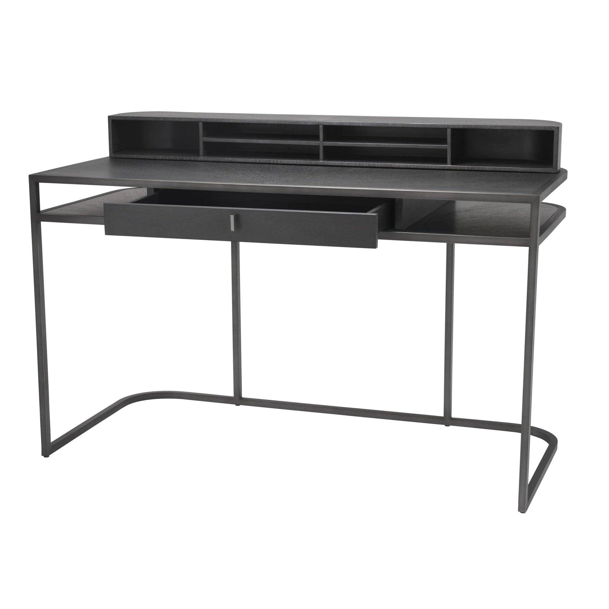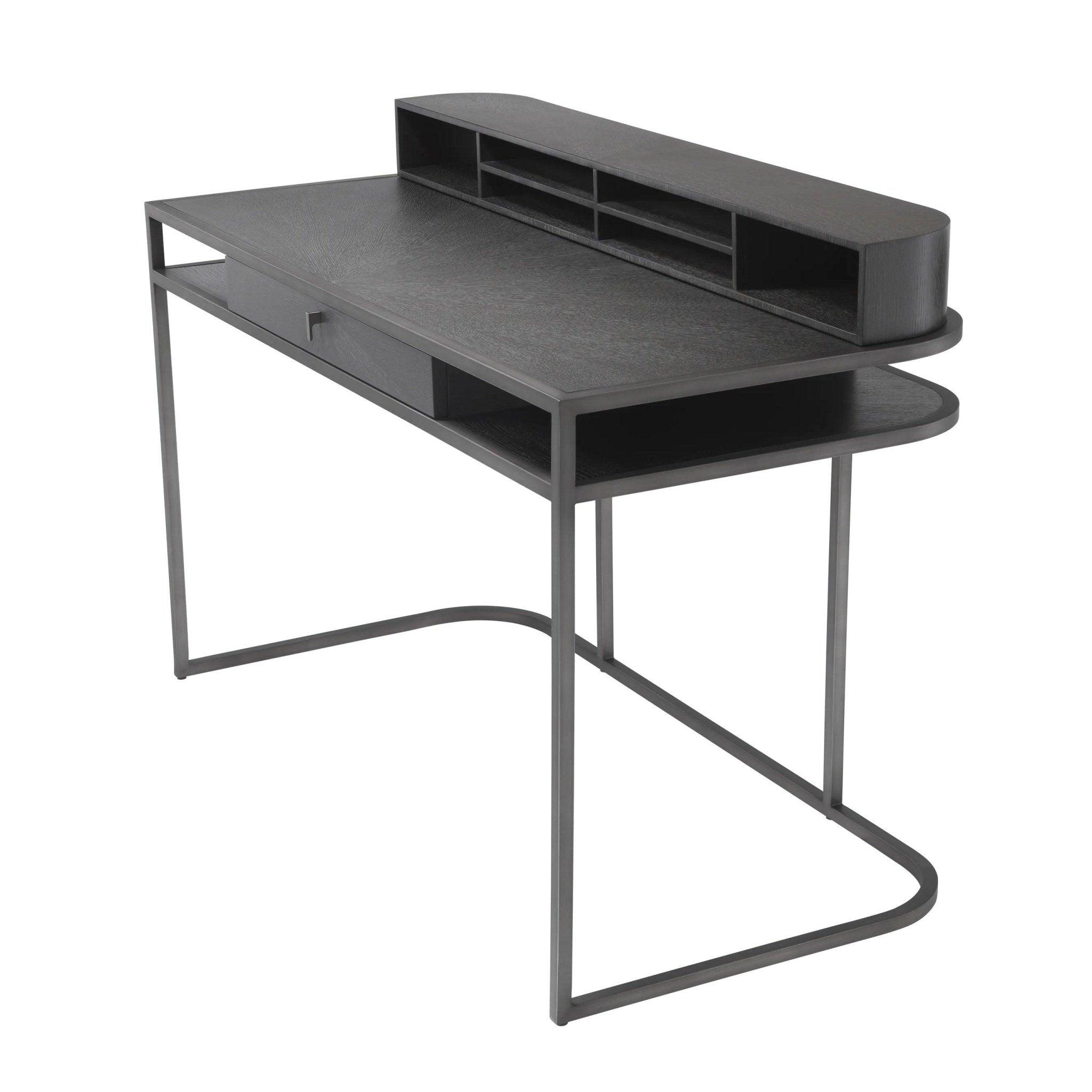 Psací stůl Highland je poctou klasickému dánskému nábytku z poloviny 20. století, který se stal ikonou designu. Jeho elegantní linie a dubová dýha vyzařují teplo a eleganci, připomínající zlaté časy evropského designu. Jedna zásuvka, umístěná na robustním kovovém rámu s povrchovou úpravou z kartáčovaného mosazi, dodává grafitovému psacímu stolu funkčnost, zatímco zdůrazňuje jeho retro charakter.