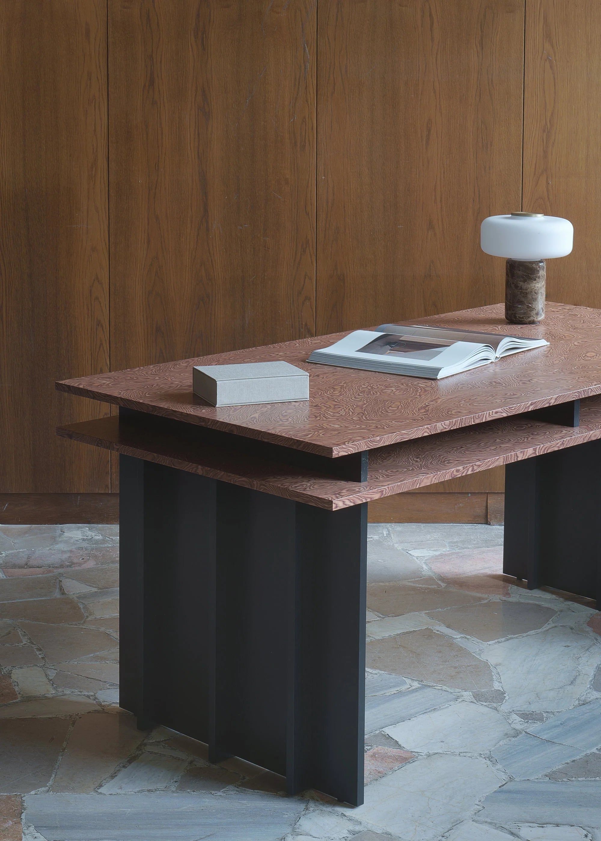 Psací stůl Piato je moderní interpretací pracovního místa, kde se minimalistická forma setkává s výjimečným řemeslem. Navržený s ohledem na flexibilní přizpůsobení různým prostorům - od domácí kanceláře po komerční interiéry - Piato přináší do okolí rovnováhu stylu a funkčnosti.