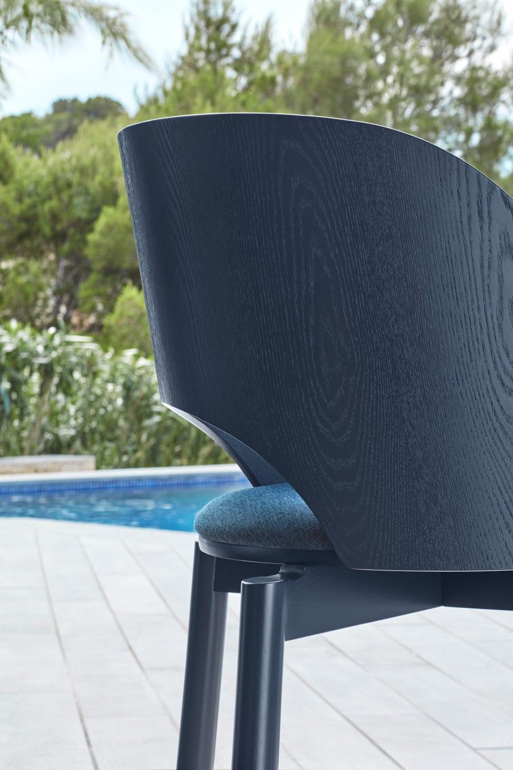 Kombinace přirozené struktury dřeva s modrou tkaninou, použitou na čalounění sedáku, vytváří dokonalé spojení. Pokud tedy sníte o designovém křesle vyrobeném z vysoce kvalitních materiálů, zvolte Dam.