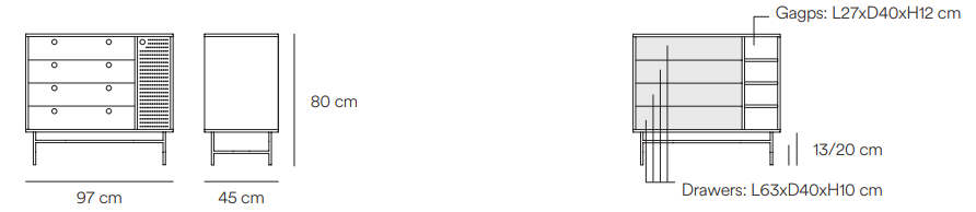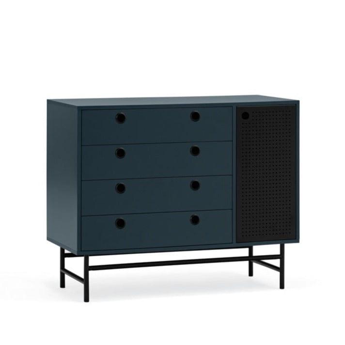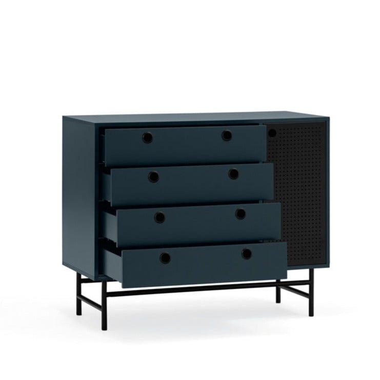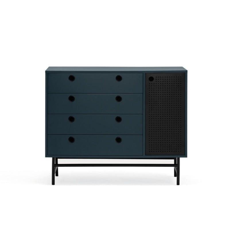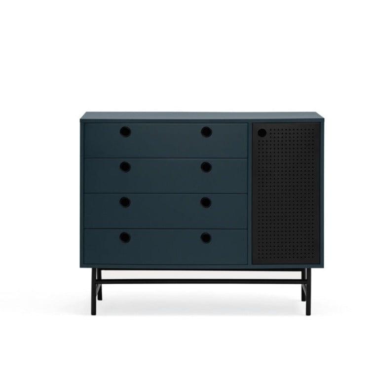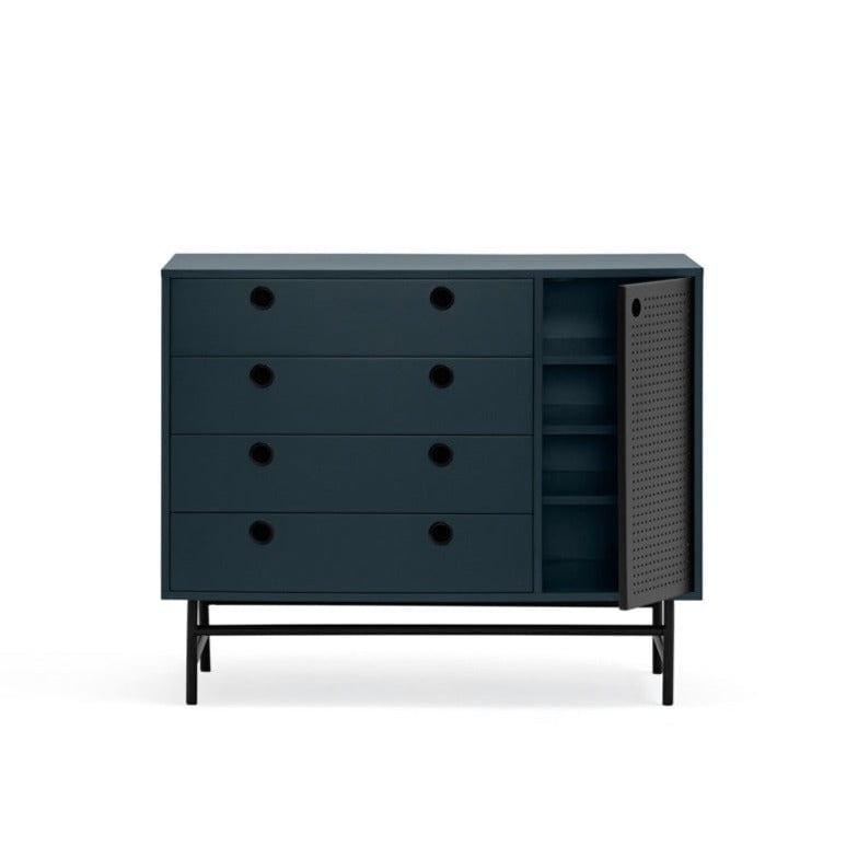 Punto se skvěle hodí také jako skříňka do obývacího pokoje nebo předsíně. Univerzálnost a multifunkčnost jsou jedny z mnoha vlastností, za které si ji zamilujete. Použití tmavě modrého kovu dáváskříňce loftový charakter, který kombinuje útulnost a eleganci.