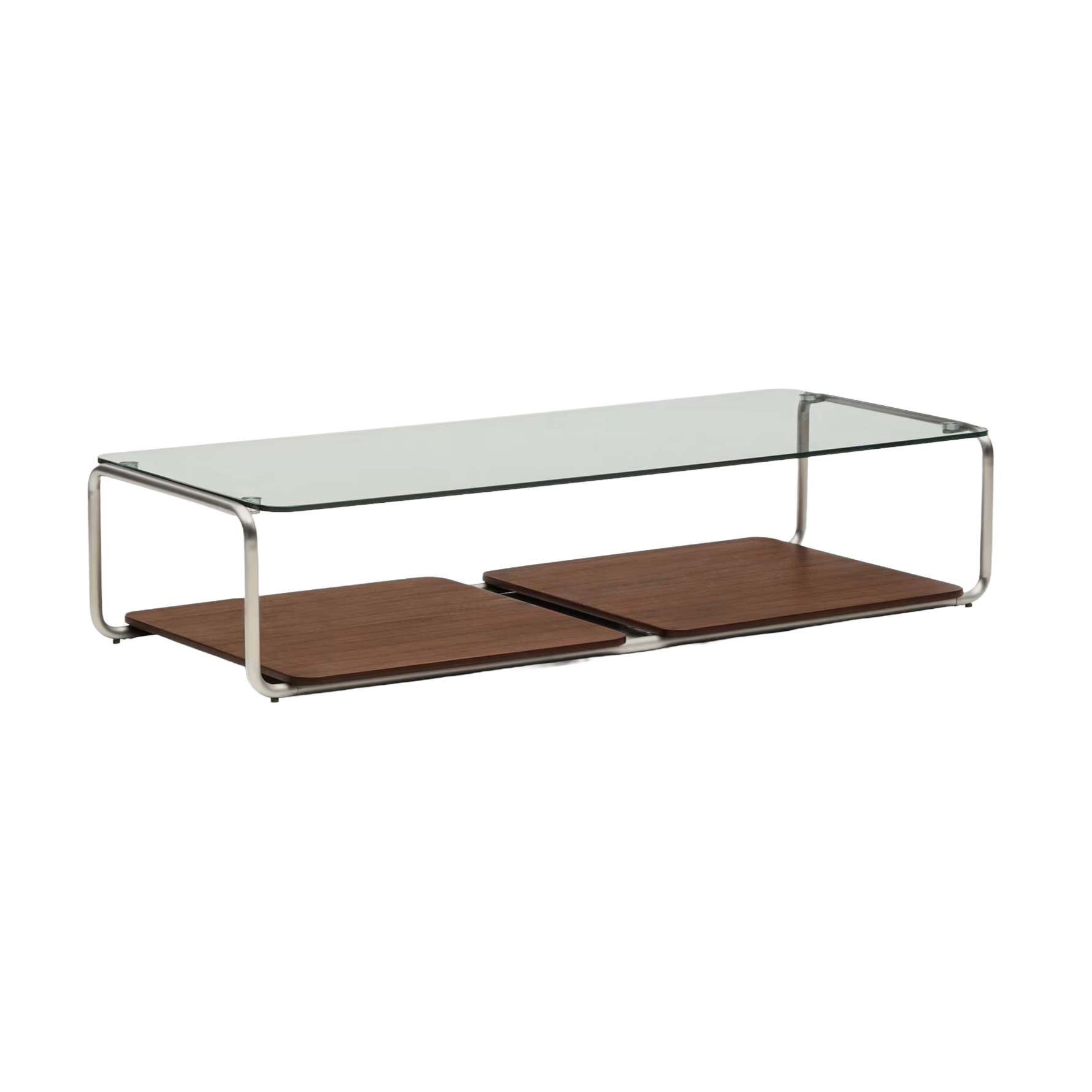 Konferenční stolek TARSEL tmavě hnědý ořechový dýhovaný se ocelovým podstavcem