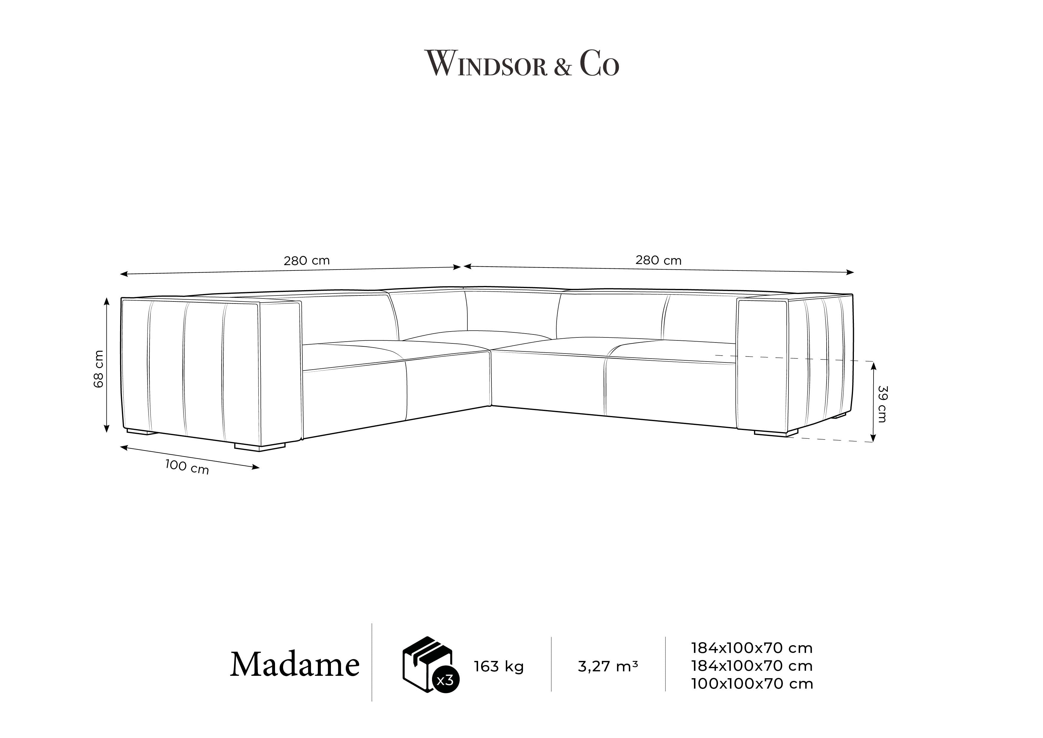 Rohová sedačka pro pět osob Madame s výrazným charakterem a elegantním provedením je skvělou volbou do moderního obývacího pokoje. Hluboké sedadlo je ideální jak pro společenská setkání, tak pro chvíle odpočinku po náročném dni. Umožňuje pohodlně relaxovat v uvolněných polohách. S nízkým profilem, širokými opěrkami a zádovými opěrkami vytváří útulný tvar.